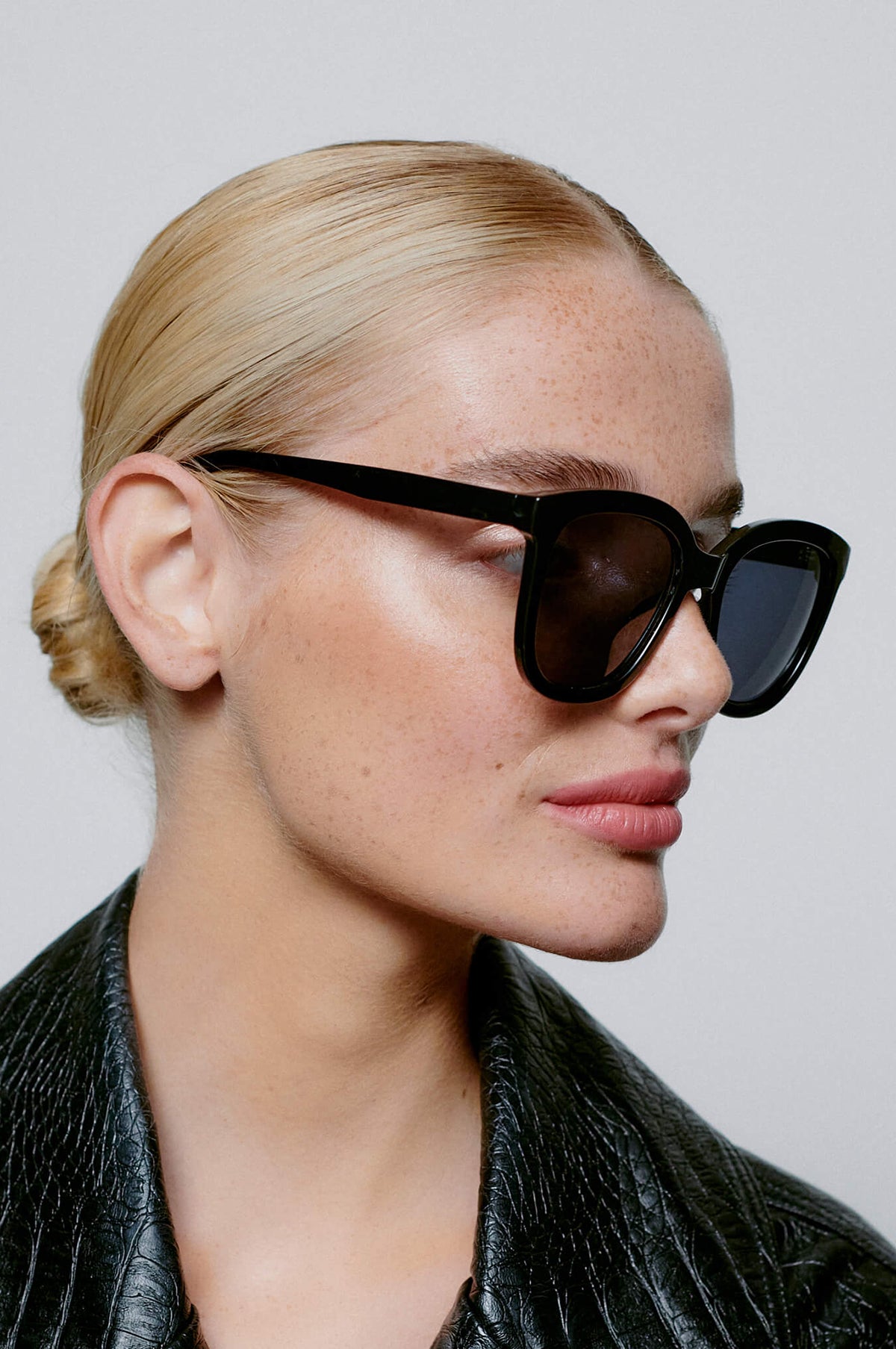 Billy is this year's big diva. A pair of sunglasses with large lenses and a solid exclusive rounded square frame. It is a pair of glasses that you notice and which adds something extra cool to any outfit. The arms features a metal core. They have UV 400 protection, are made with scratch-resistant polycarbonate lenses and high quality optical hinges and come with a cleaning bag and presentation box.