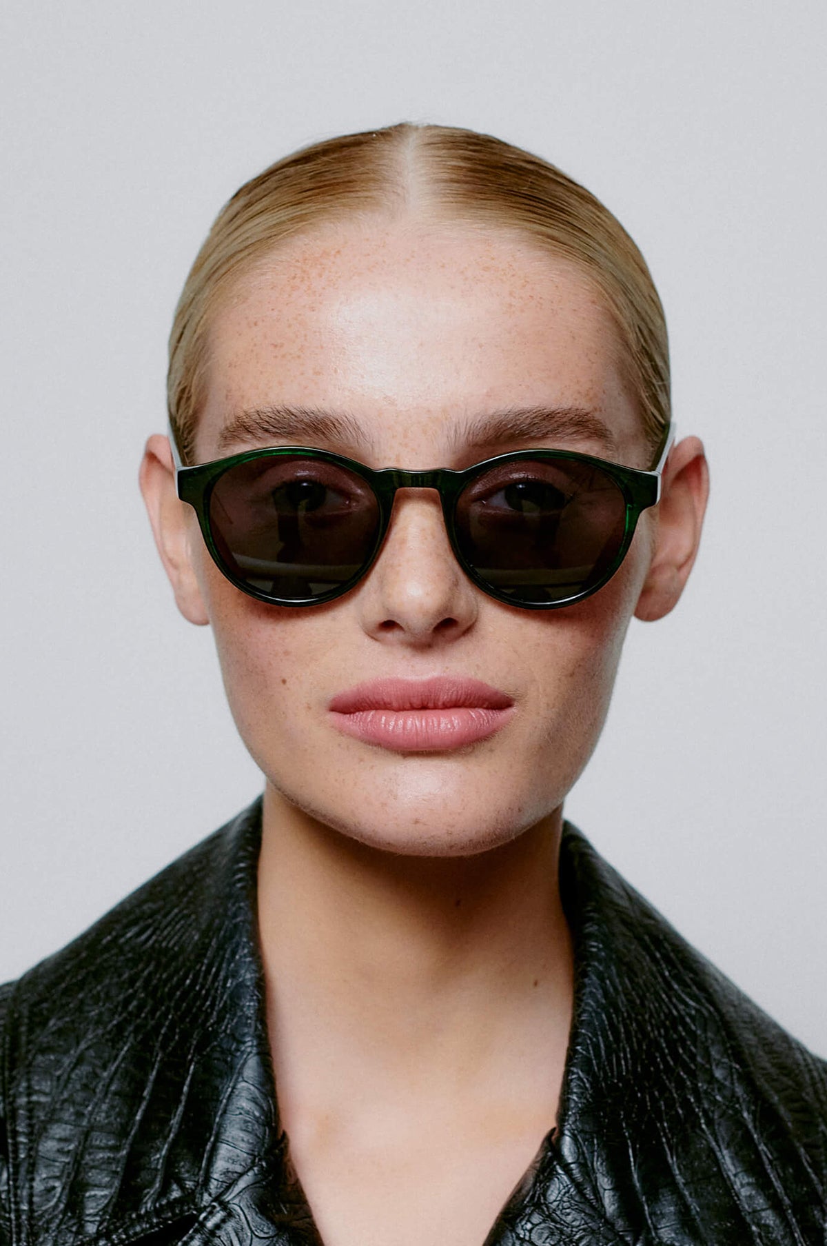 The Marvin sunglasses seem to suit everybody and are a great classic, unisex style! The design features an almost oval frame with subtle angular detailing above the bridge, in a cool semi transparent green colourway. They have UV 400 protection, are made with scratch-resistant polycarbonate lenses, high quality optical hinges, formable temples with a metal core and come with a cleaning bag and presentation box.