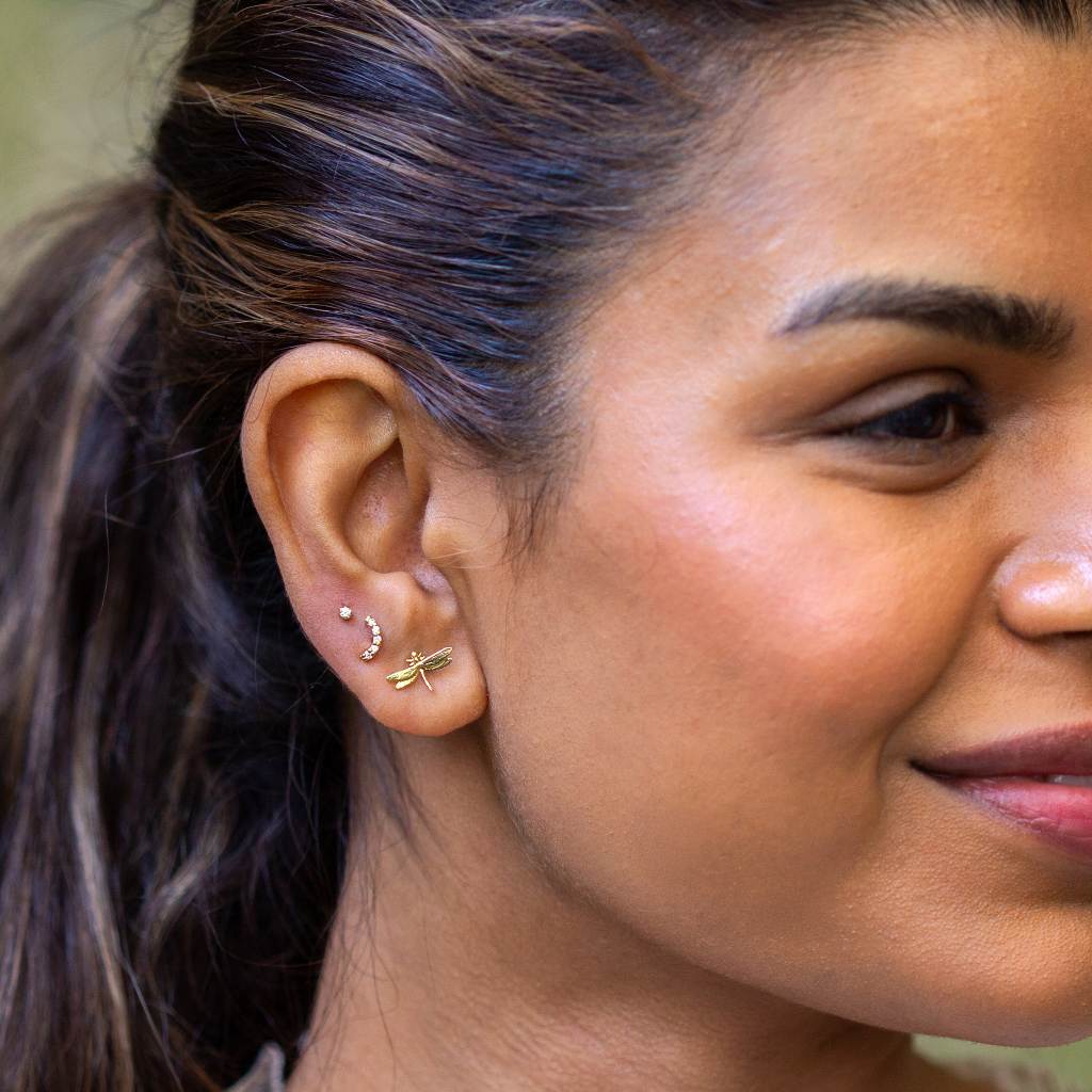 A.M. Teeny Tiny Dragonfly Stud Earrings 18ct Solid Gold