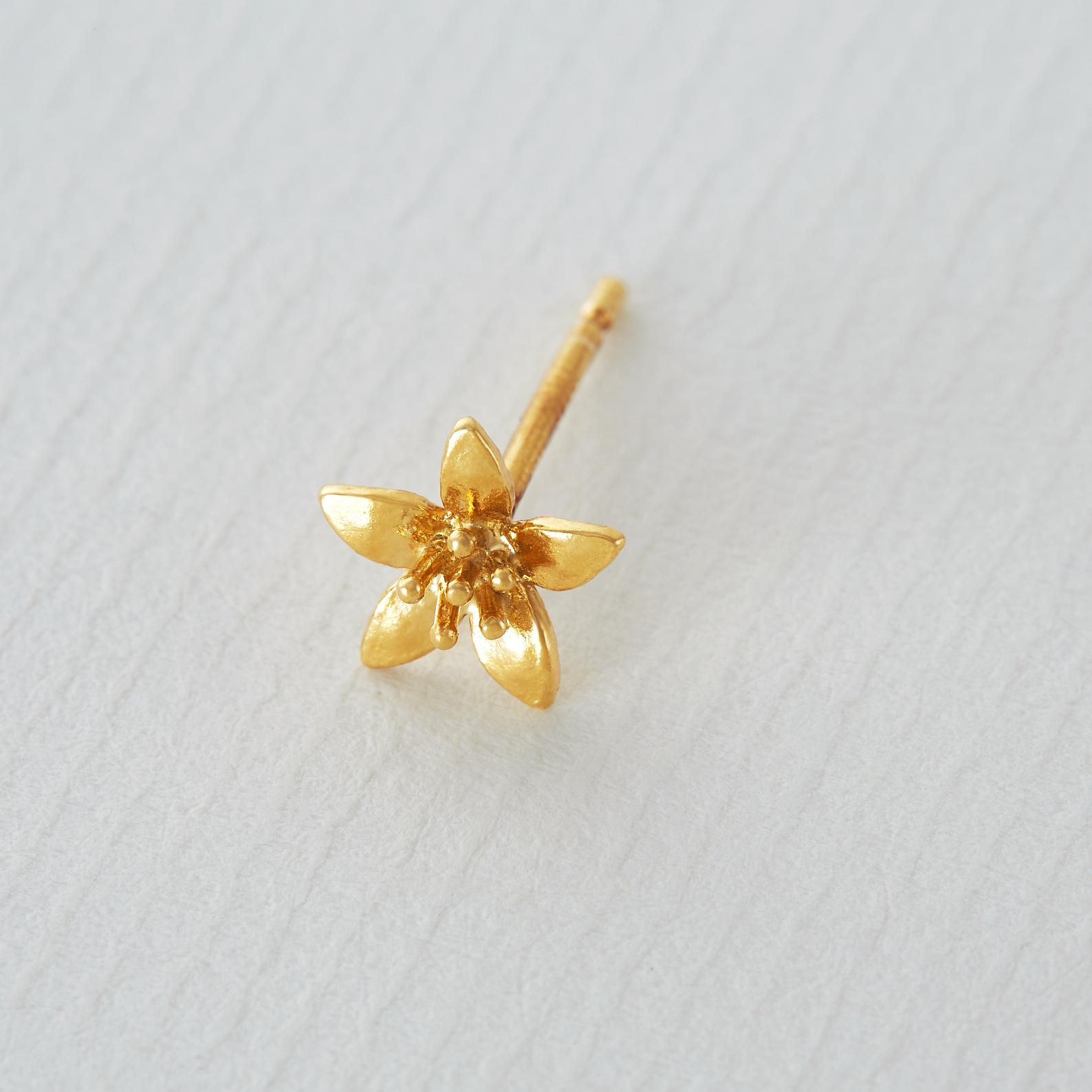 An intricate lemon blossom flower forms a sweet stud earring, made to mix-and-match.