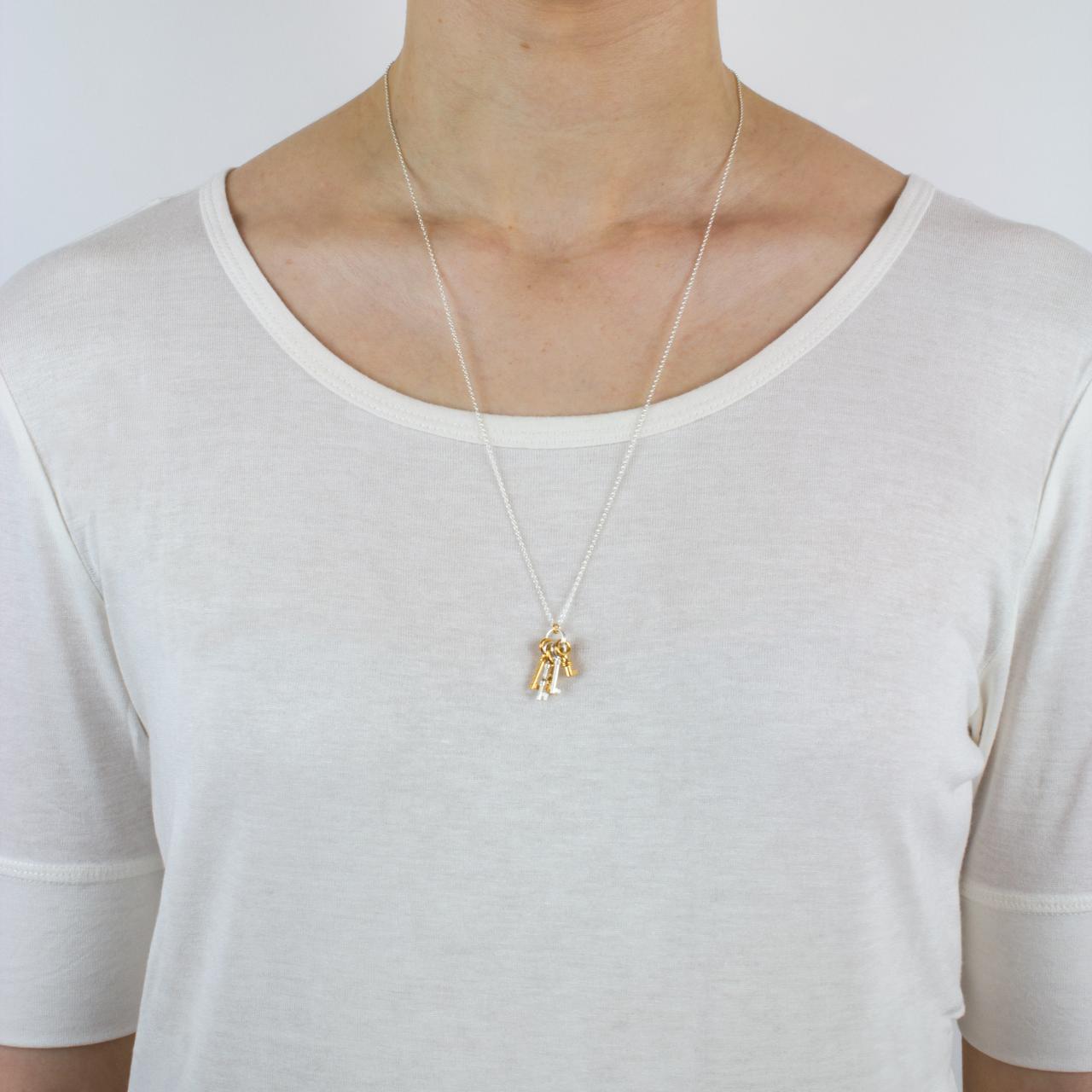 A precious bunch of gold and silver keys jangle from a sterling silver chain!