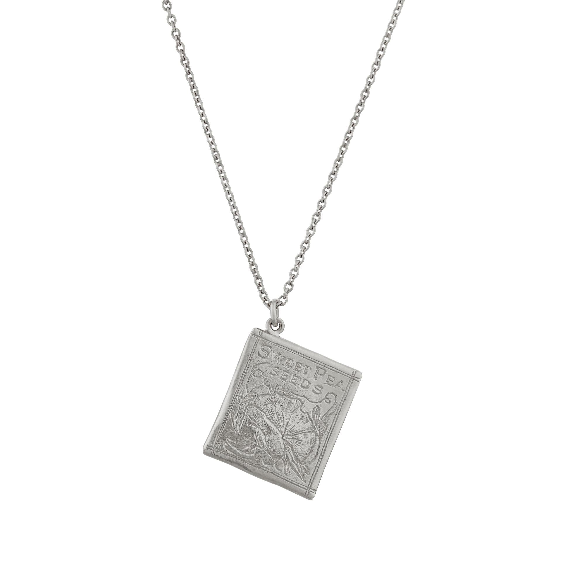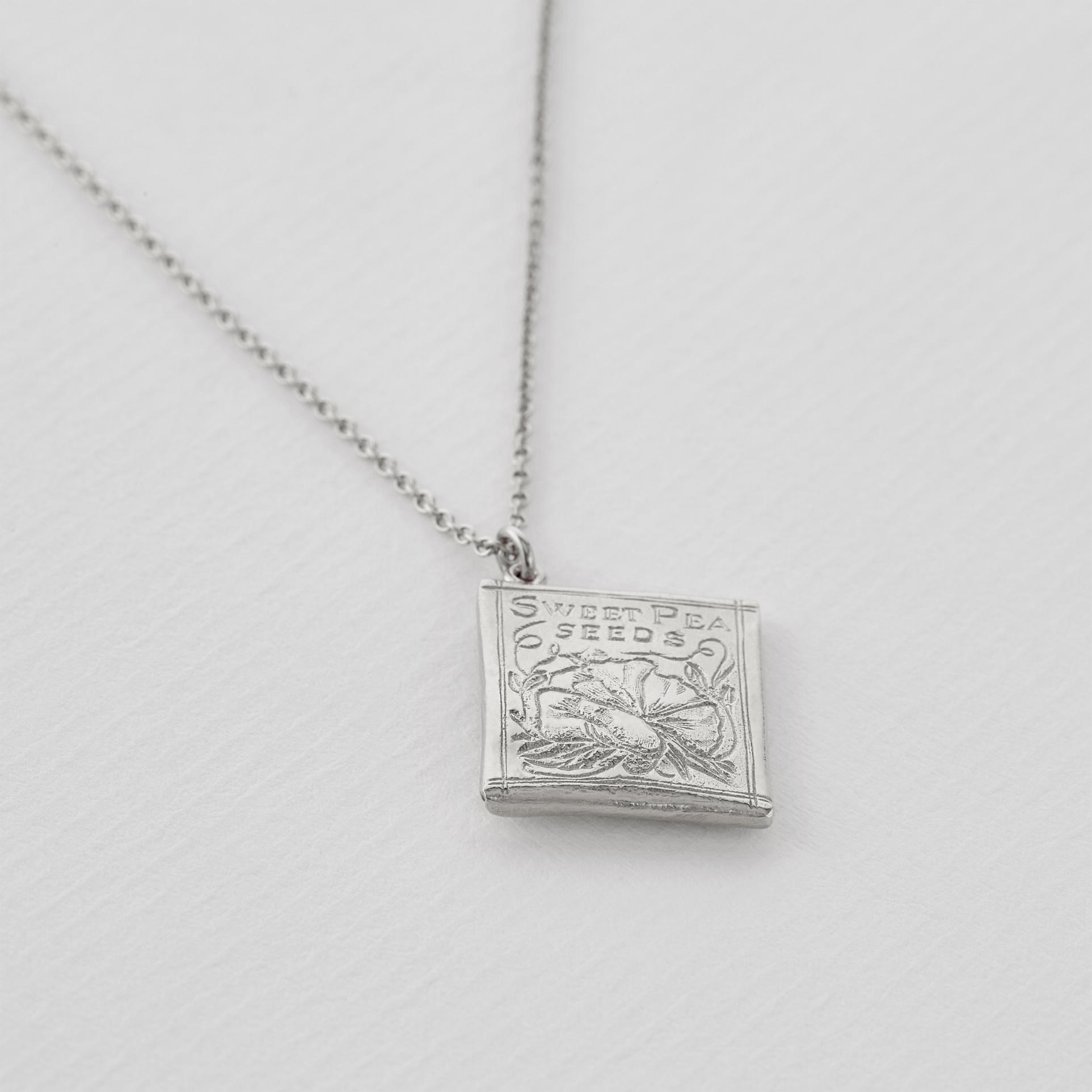 A.M. Sweetpea Seed Packet Necklace Silver