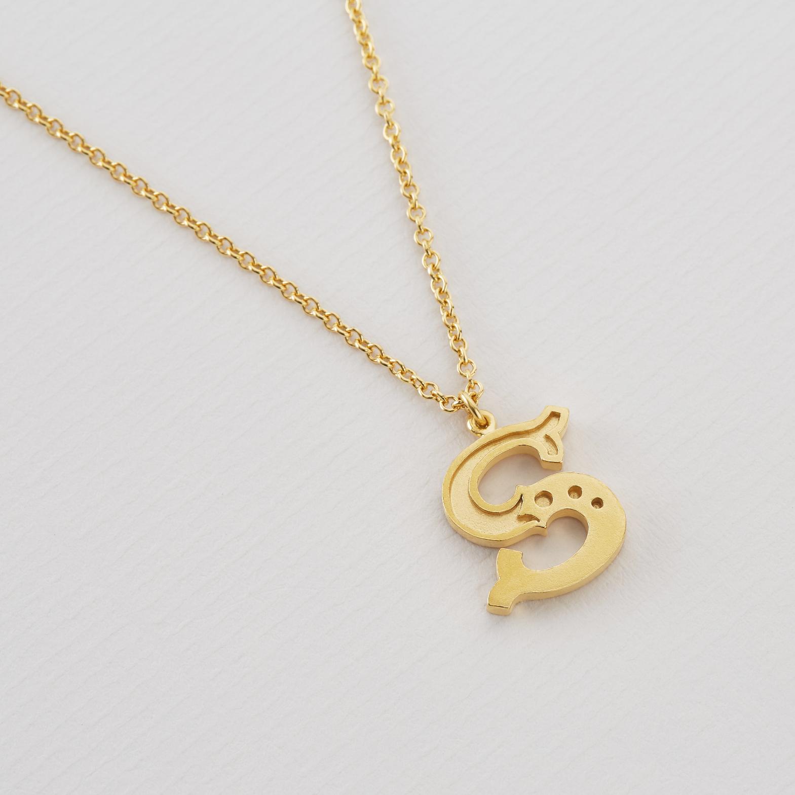 Formed in a nostalgic, graphic style, this letter ‘S’ necklace celebrates the skill and craftsmanship found in the hand-painted signs of yesteryear. All of the letters and symbols for ‘Just my Type’ were created in two layers, giving each design depth and detail.