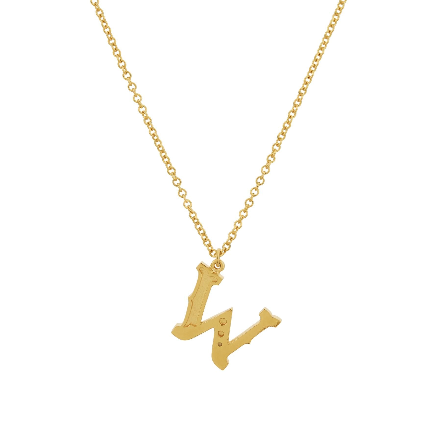 Formed in a nostalgic, graphic style, this letter ‘W’ necklace celebrates the skill and craftsmanship found in the hand-painted signs of yesteryear. All of the letters and symbols for ‘Just my Type’ were created in two layers, giving each design depth and detail.
