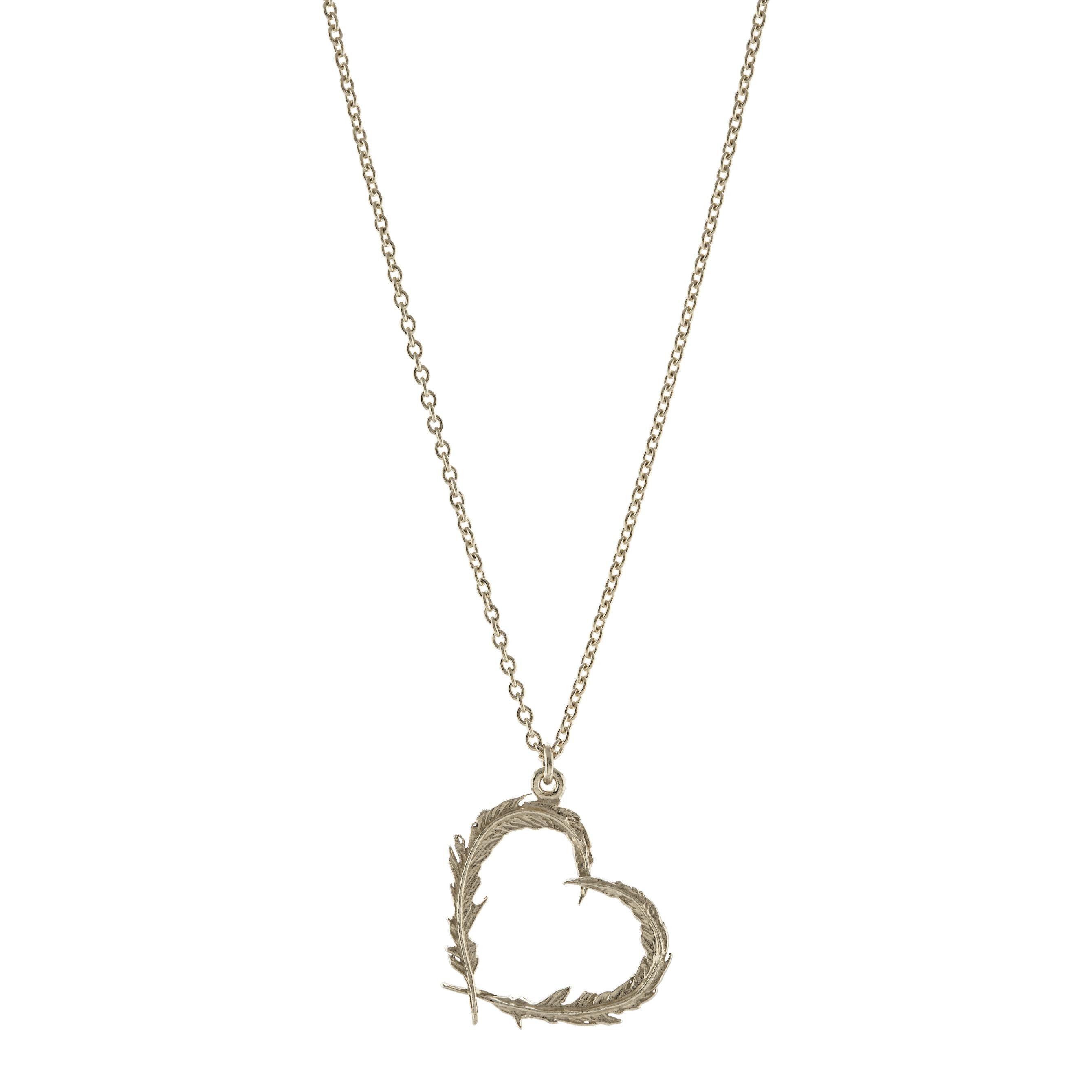 A pair of delicately entwined feathers form a floating heart in this delicate pendant necklace!