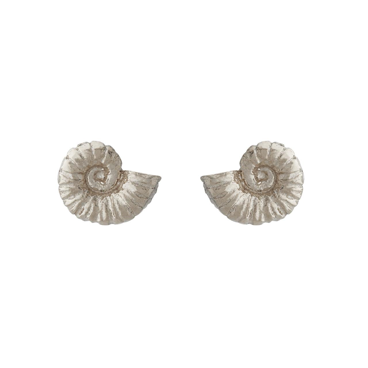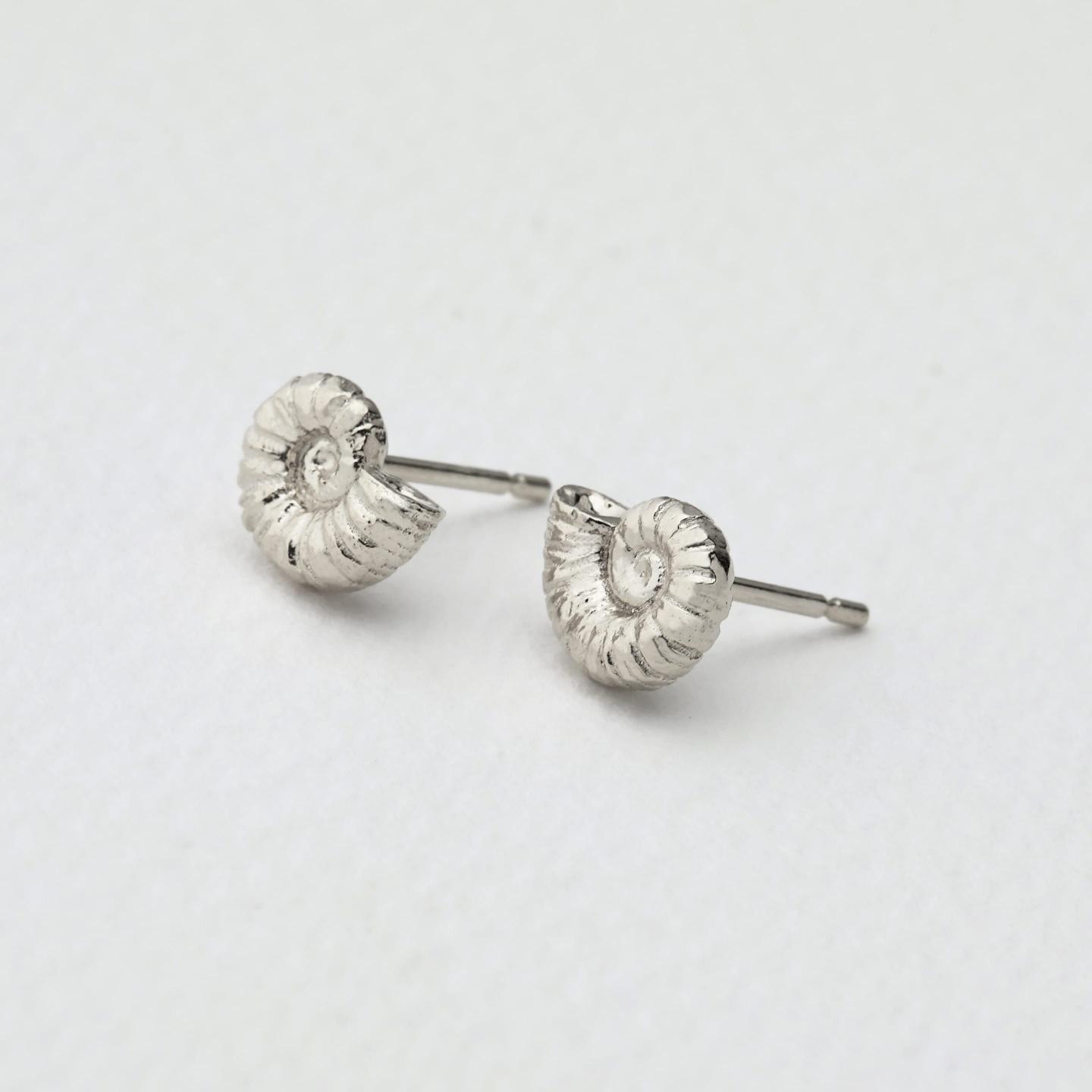 The prehistoric ancestors of today’s octopus, two textured and polished Ammonite Shells spiral to form a pair of stud earrings.