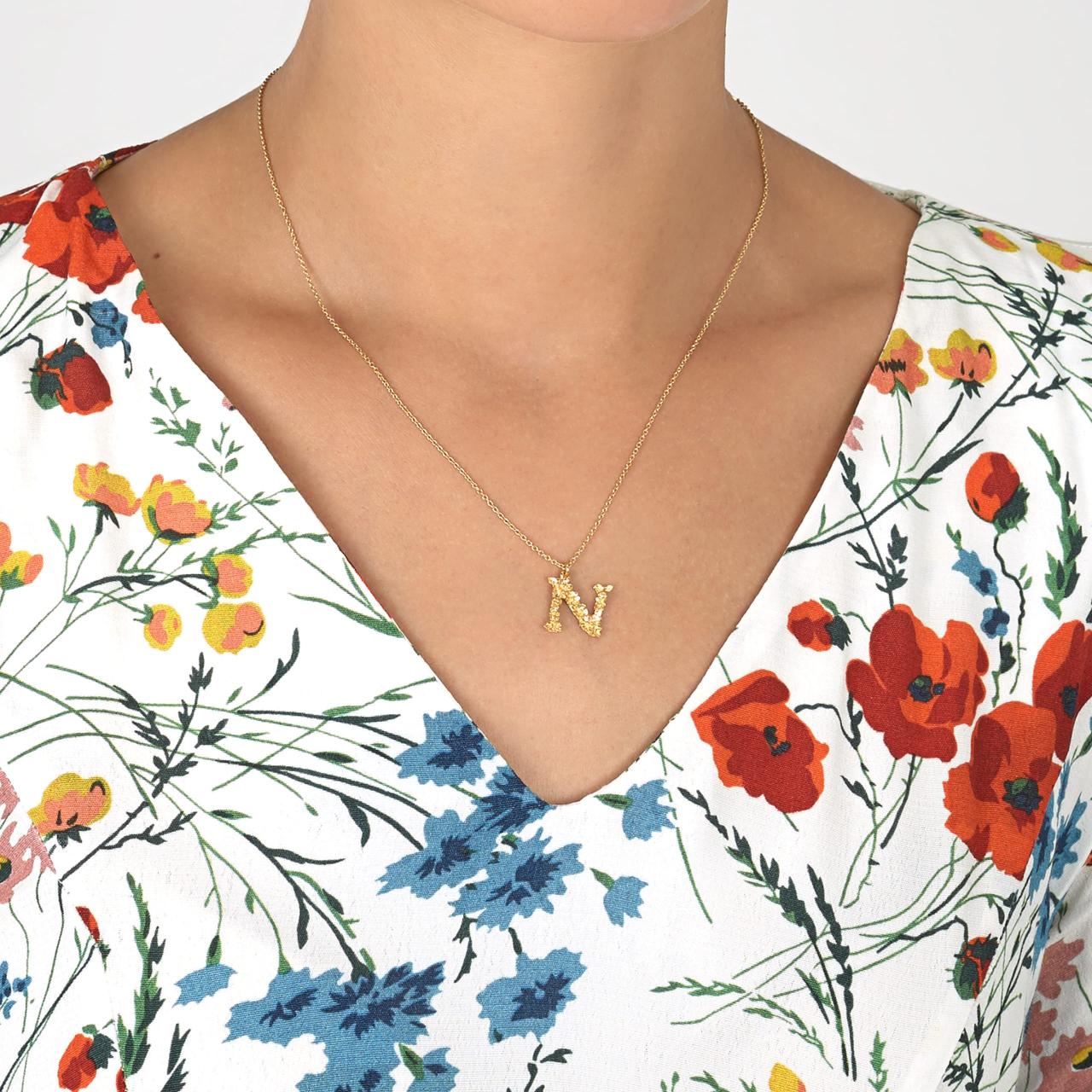 A.M. Floral Alphabet N Necklace Gold
