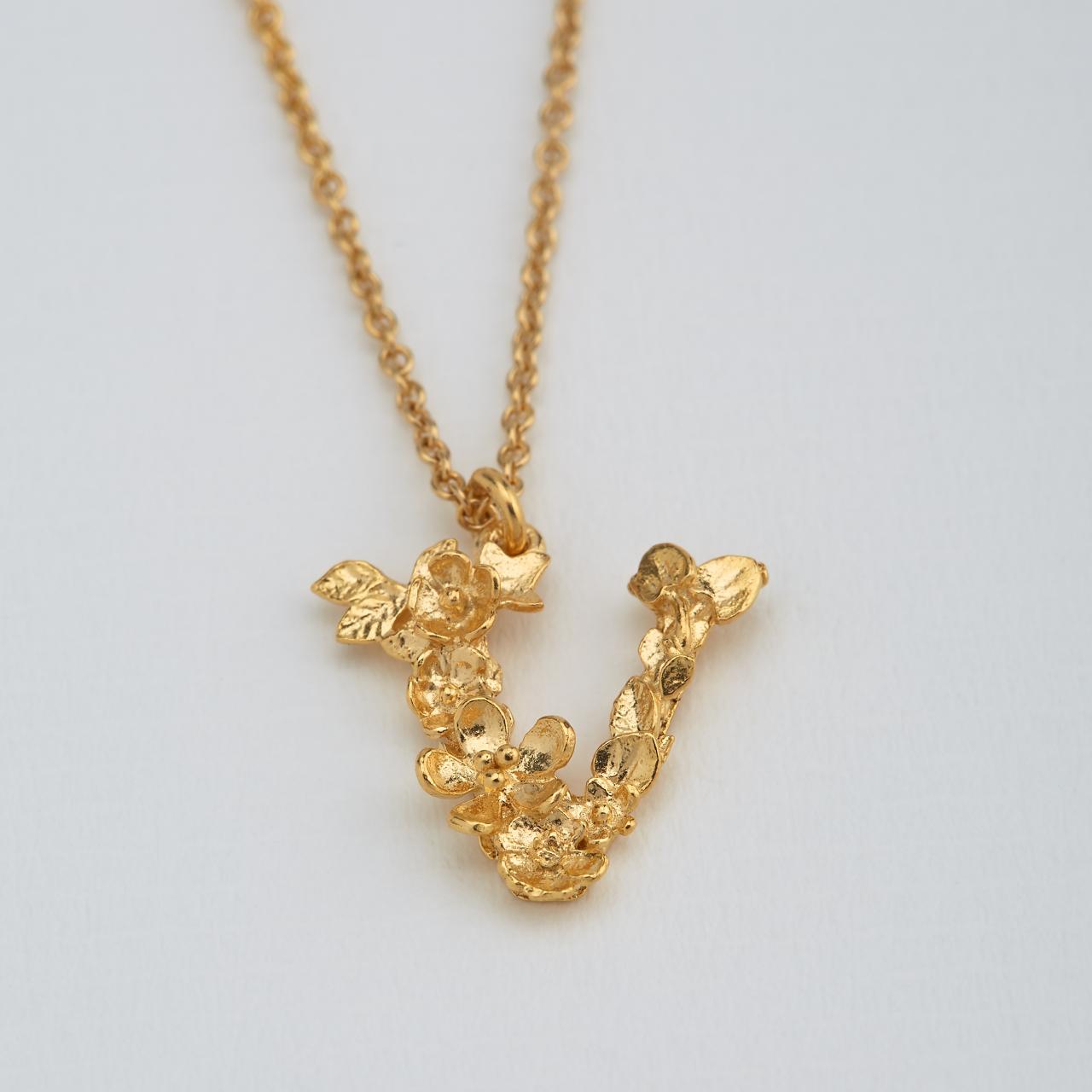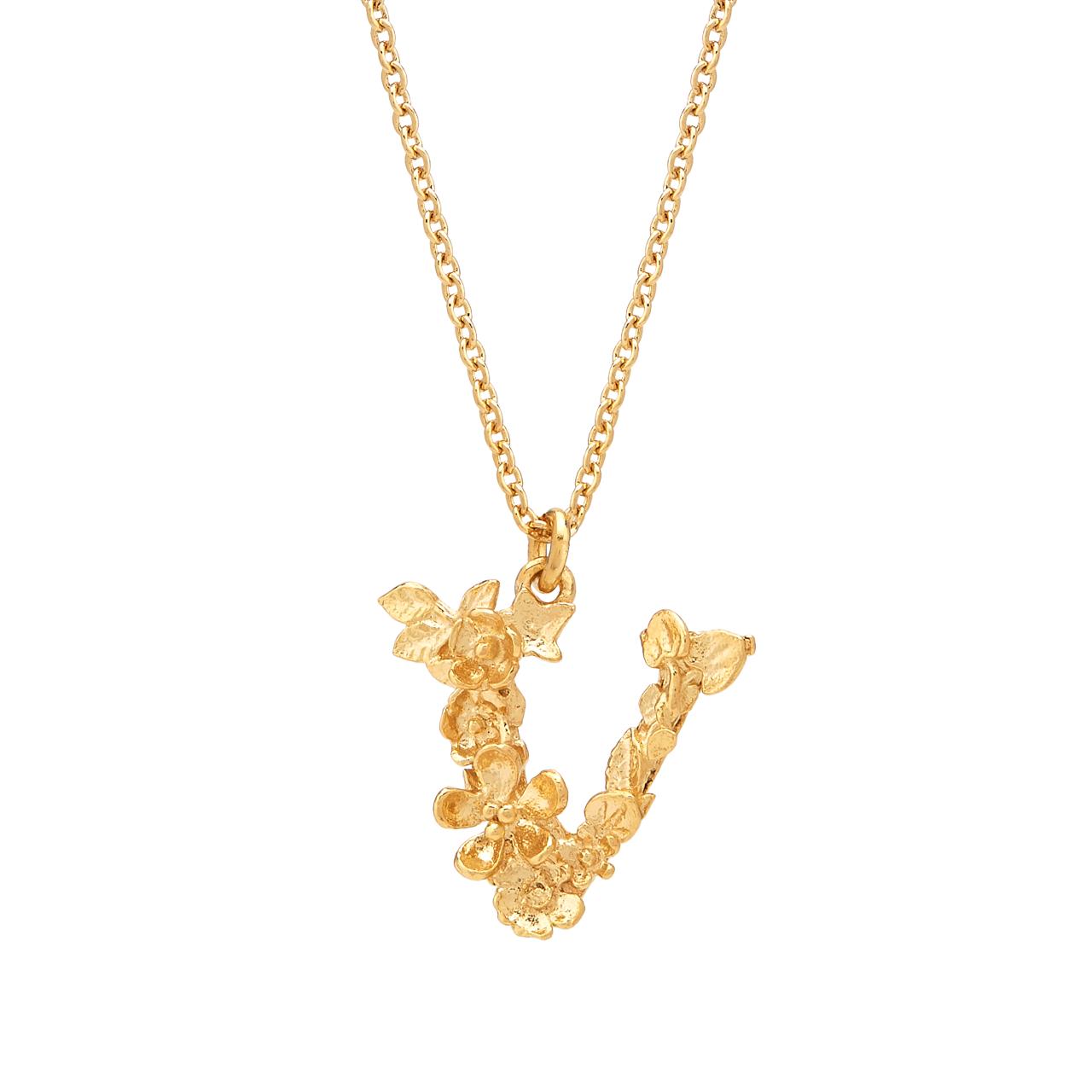 A.M. Floral Alphabet V Necklace Gold