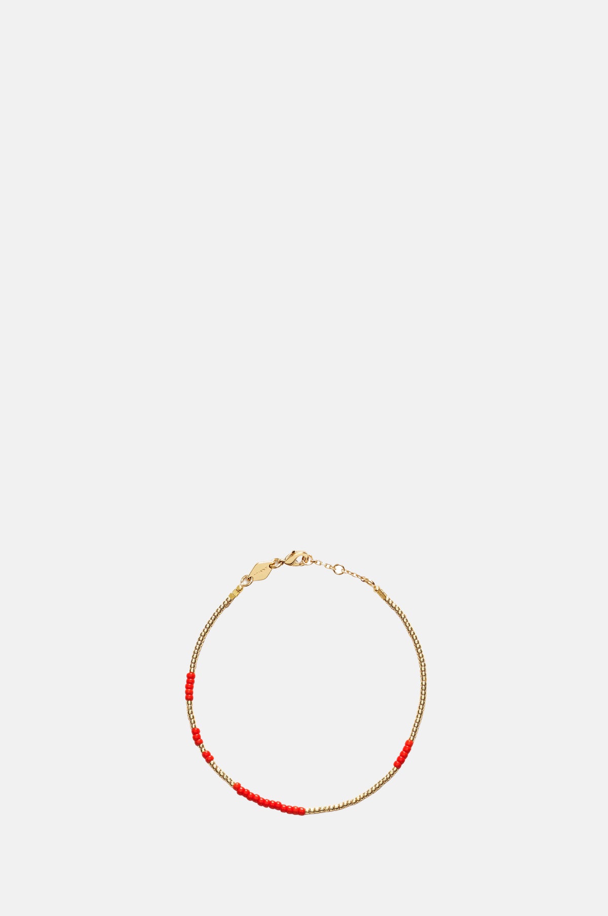 Playful and sweet, this asymmetric bracelet with tiny coral and gold beads from Anni Lu is perfect for spring/summer. Dainty and delicate on its own, it also looks wonderful mixed with other jewellery.