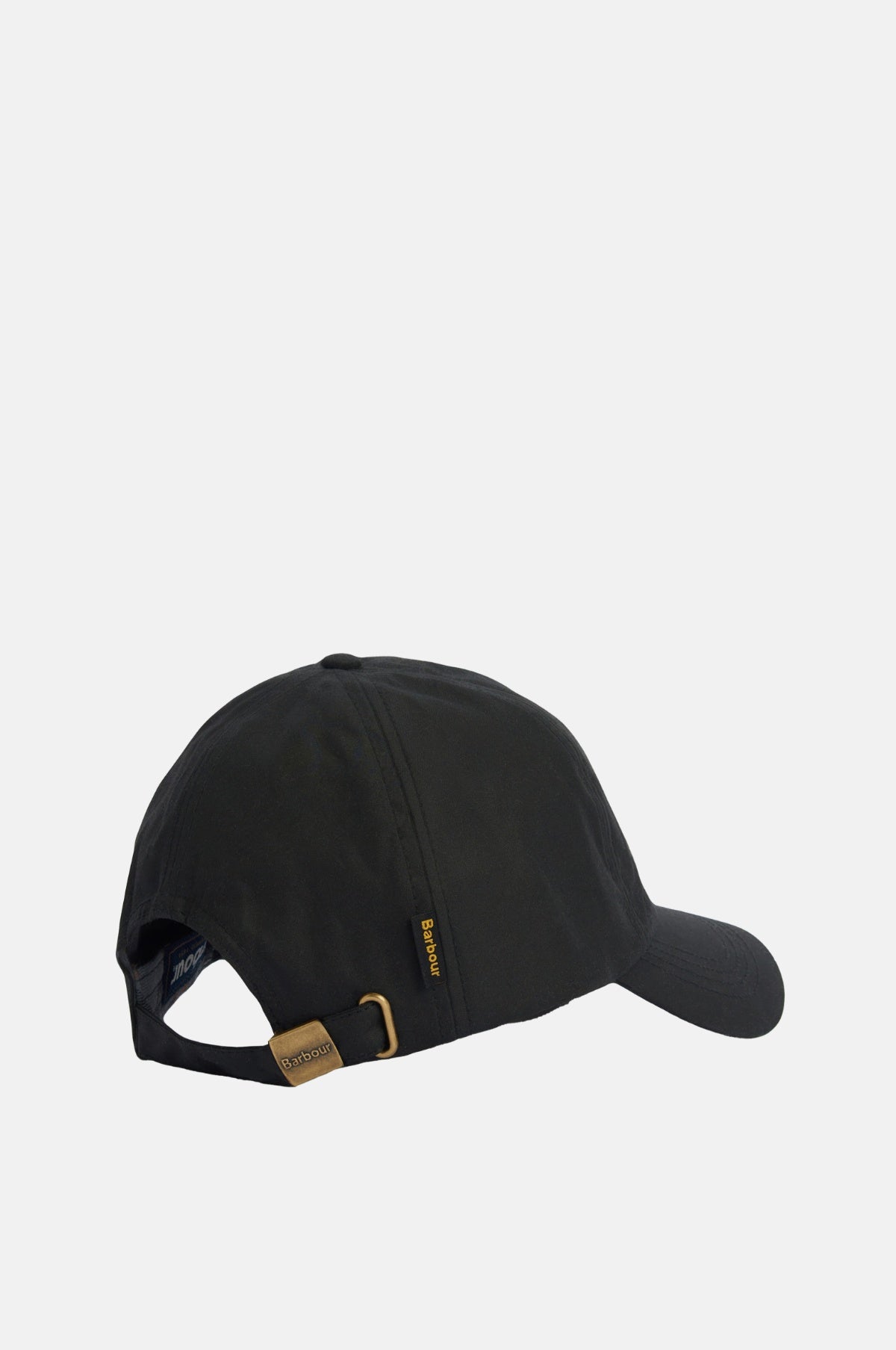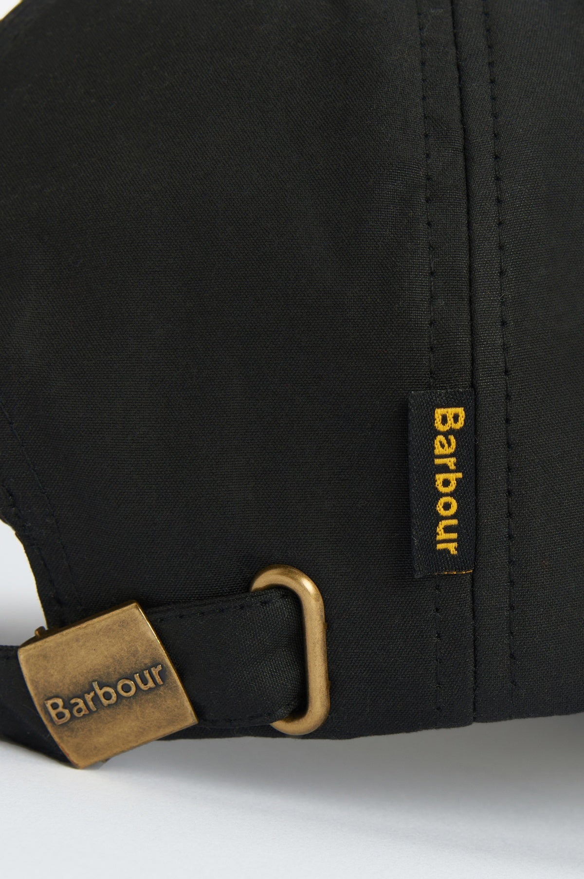 The Barbour Wax Cap is a classic 6 panel strapback constructed of Barbour's classic wax cotton making it perfect for showery days. Finished with a small tonal embroidered logo on the front. Available in Black, Navy and Olive.