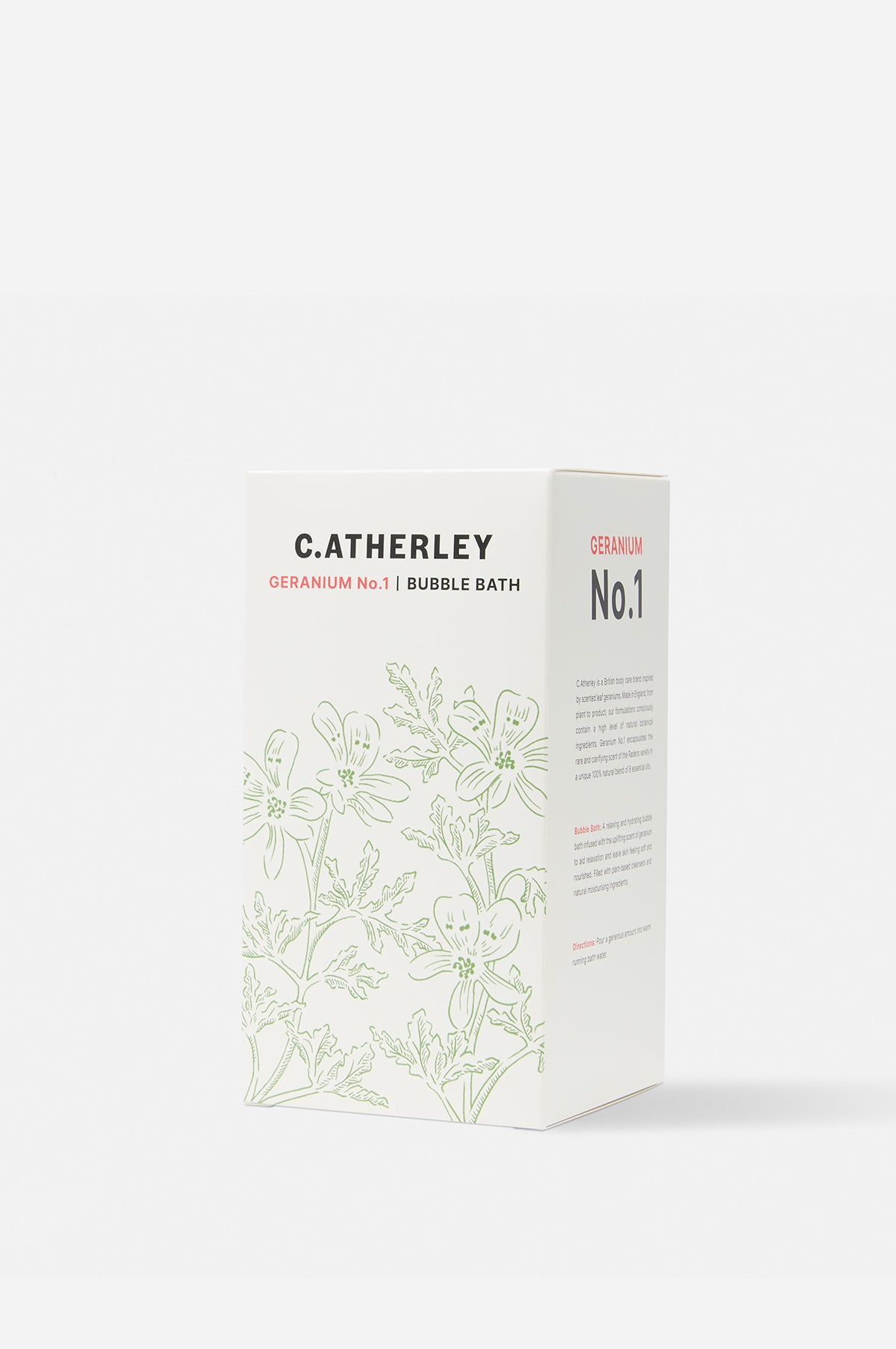 C.Atherley expertly capture the magic and soothing fragrance of scented leaf geraniums. From plant to product, these bespoke formulations of natural botanical ingredients have been developed, created and bottled in the English countryside. Scent Geranium No.1 encapsulates the rare and clarifying scent of the Radens variety in a unique 100% natural blend of eight essential oils Geranium, Corn Mint, Lavender, Lemon Myrtle, Chamomile, Grapefruit, Cedarwood, Frankincense) with uplifting, clarifying and balancing properties.
