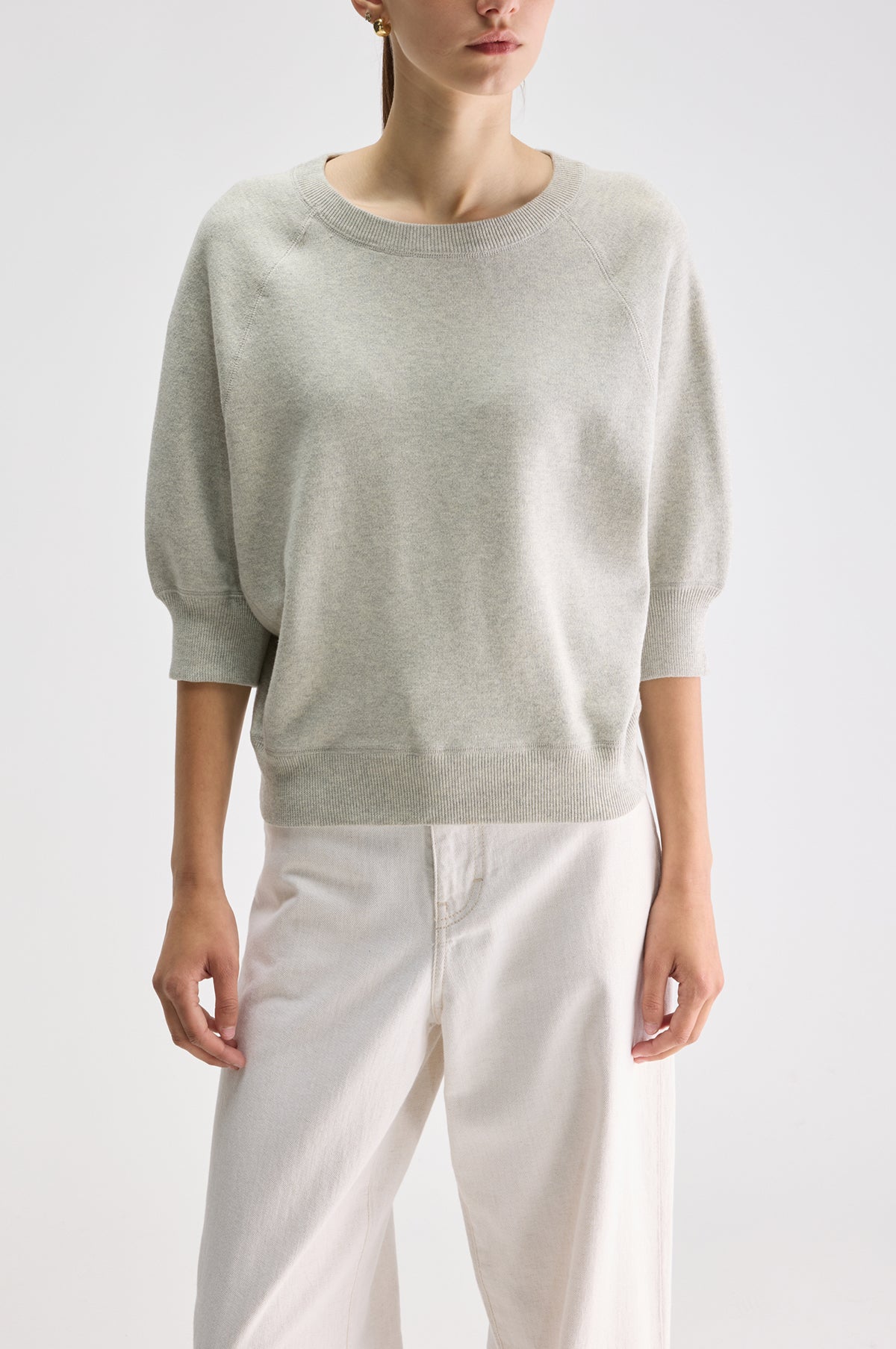 An oversized crewneck sweater from Bellerose, this light grey knit has 3/4 raglan length sleeves and ribbed edges. With its loose fit, this soft lightweight jumper has just the right amount of slouch - perfect for pairing with just about anything.