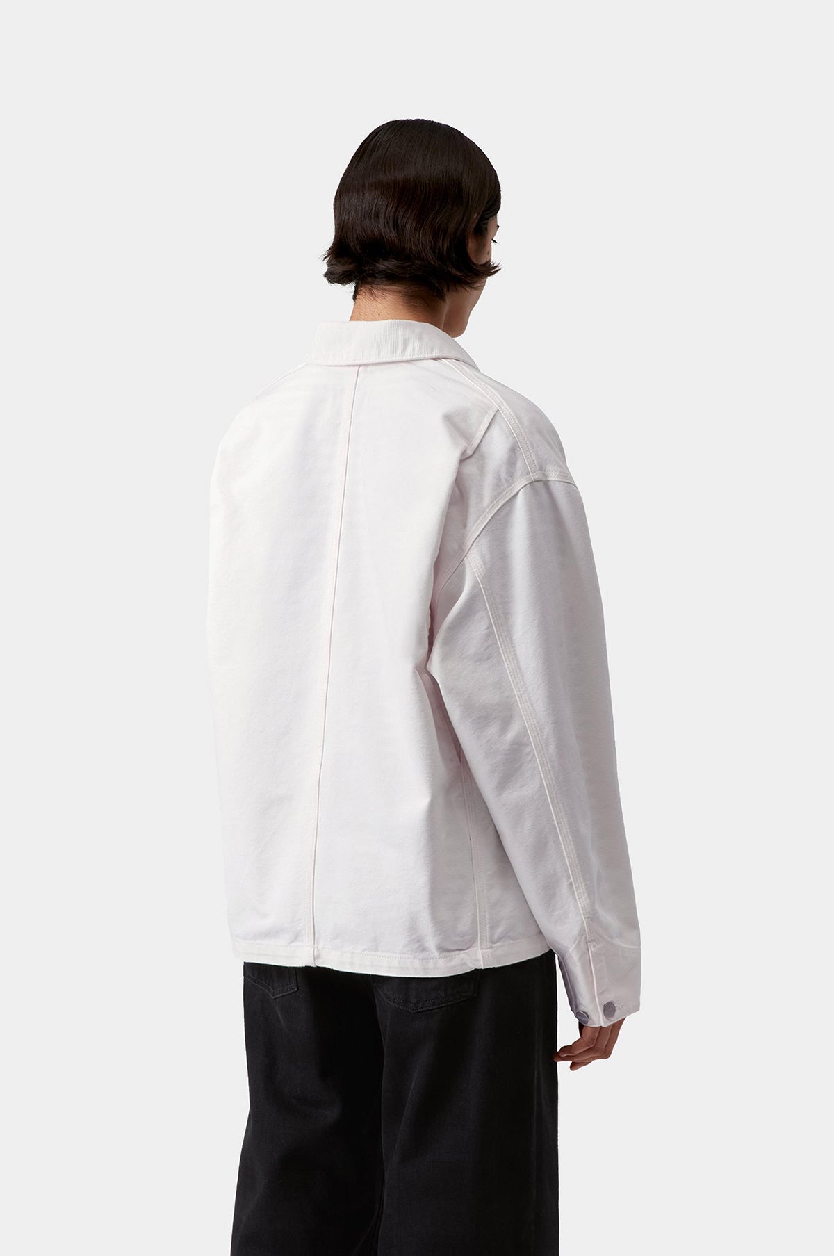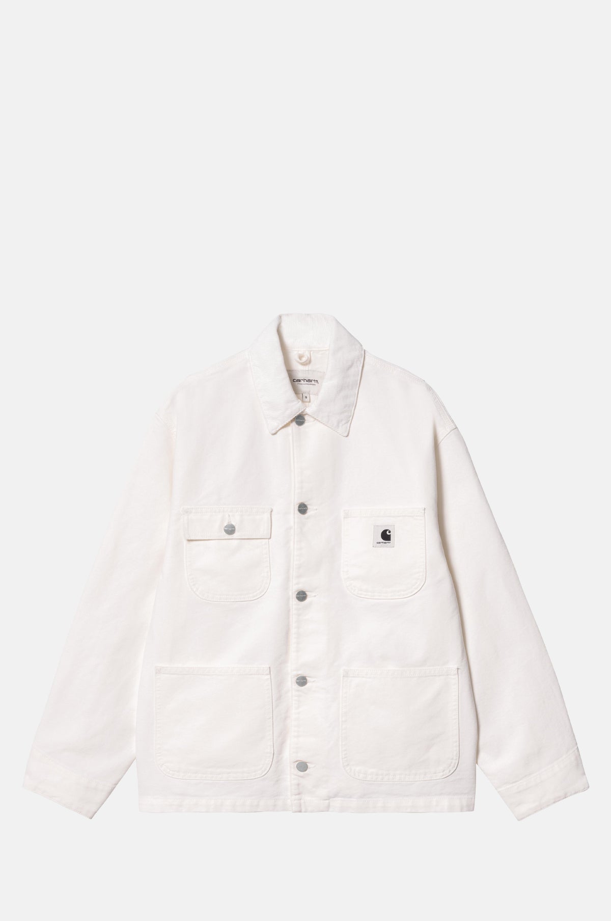 Crafted from a heavyweight white Dearborn Canvas, the Michigan Coat from Carhartt WIP takes inspiration from the classic chore coat silhouette and has been cut in a loose fit. Front patch pockets and a corduroy collar add tactile contrast, while triple-stitched seams enhance durability. A woven square label completes the look.