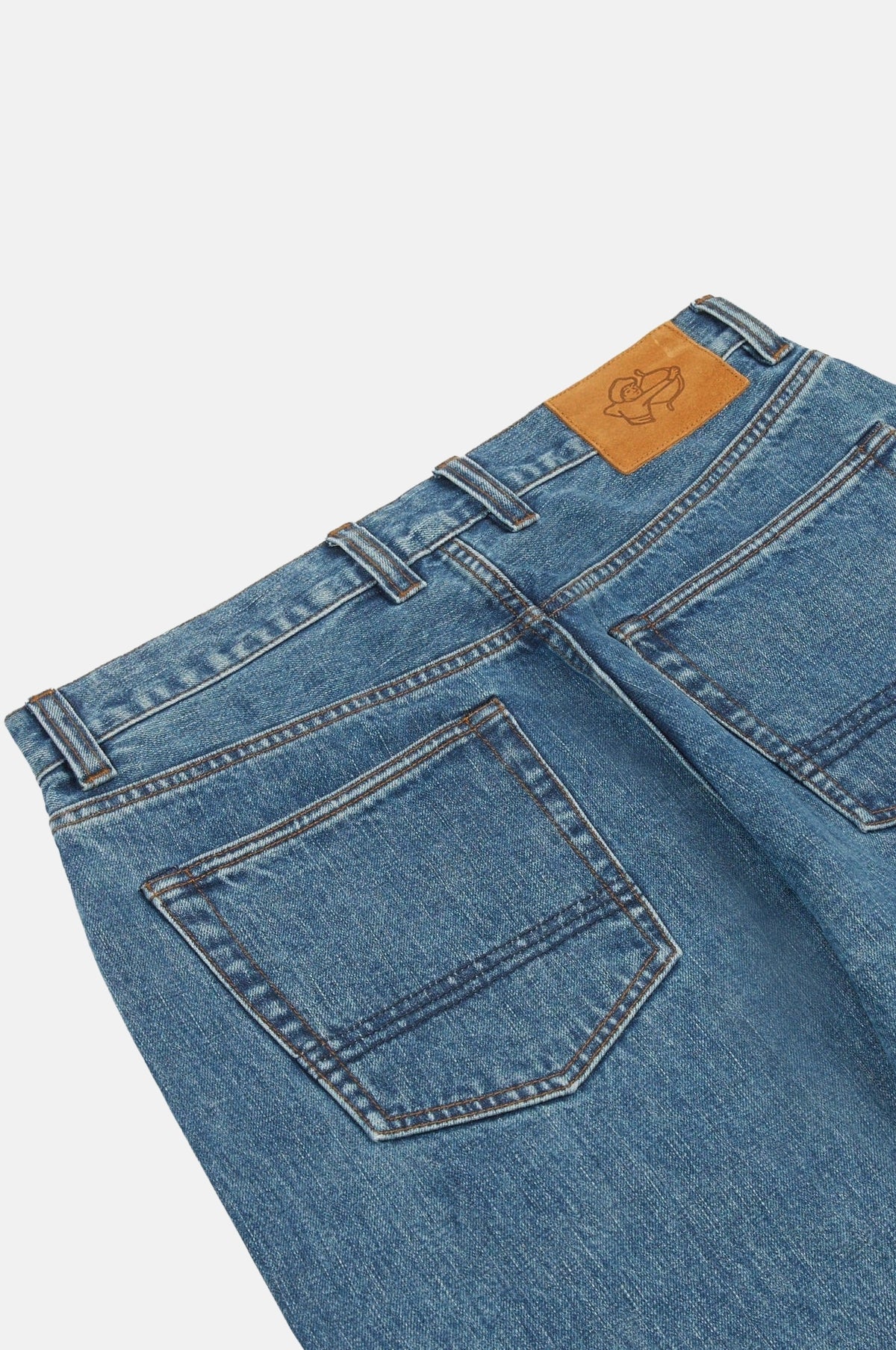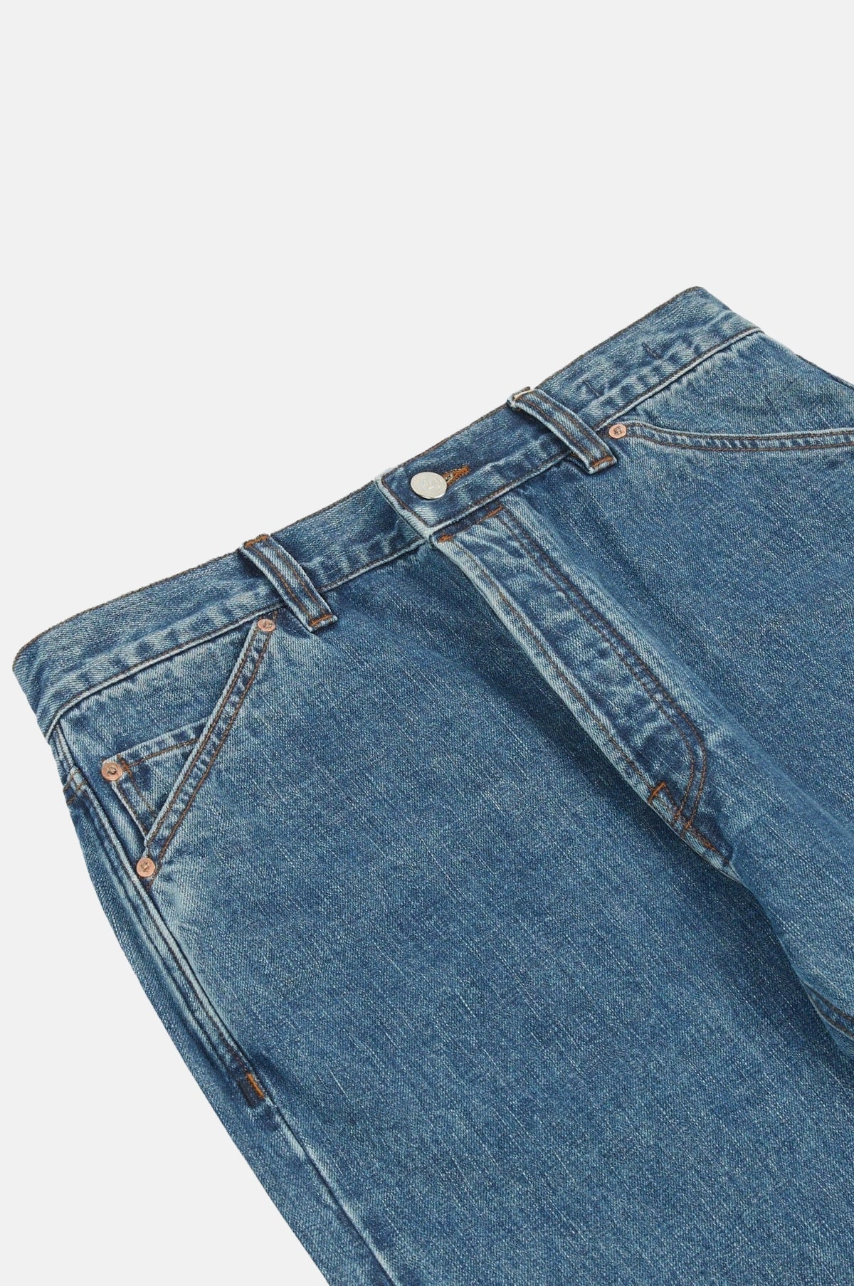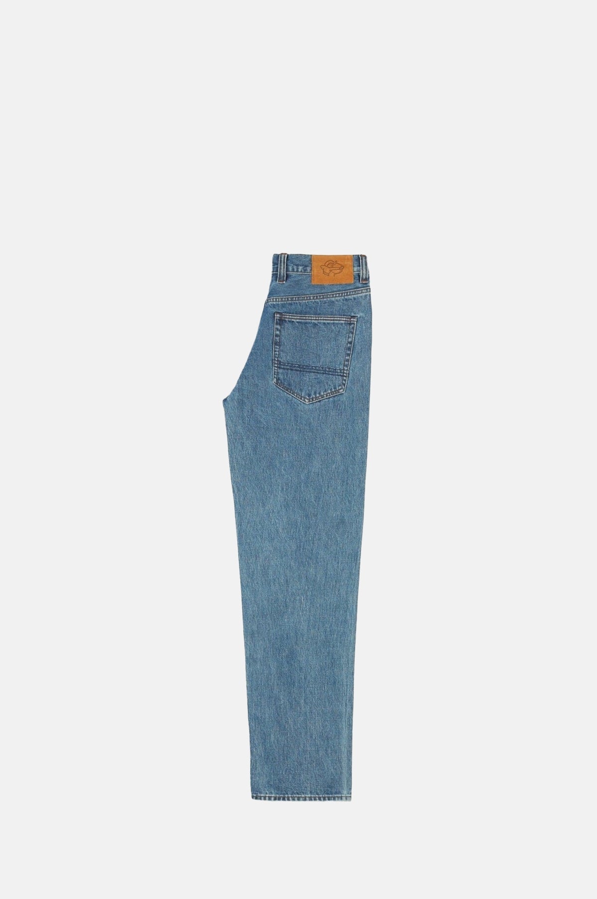 This classic pair of jeans is constructed from a high quality 14.2oz selvedge denim from Okayama, Japan. The denim is woven on an extremely rare shuttle loom, and is dyed with natural indigo. Cut with a slightly higher rise and a relaxed, tapered fit, the jeans are finished with copper rivets and a unique slanted pocket design.