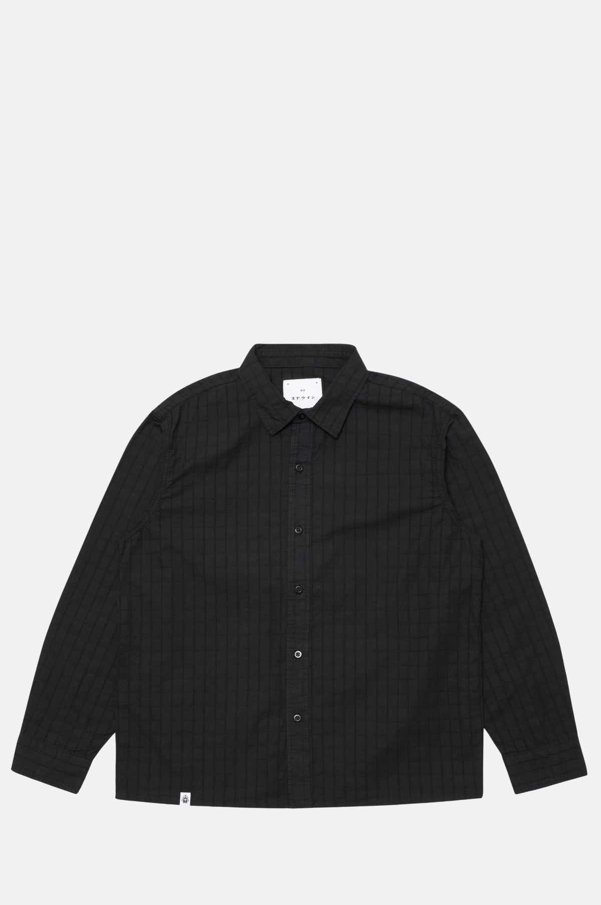 The Sebastian Shirt LS Black from Edwin is an overshirt crafted from a mid weight cotton with a tonal grid pattern. Coming in a slightly boxy fit making it easy to throw on as an outer layer over a t-shirt.