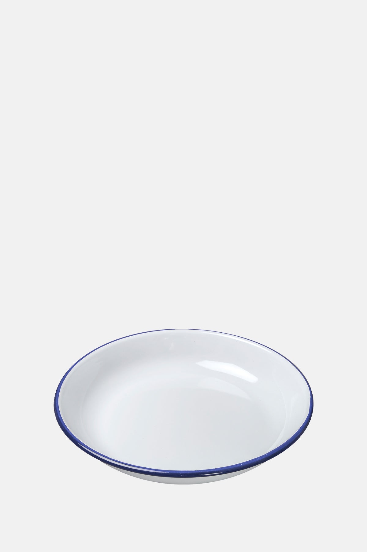 This humble enamelled plate is an icon of British homelife. The perfect vessel for piling high with pasta and salads, it has the iconic contrasting blue trim and is an enduring piece that is as at home as part of a tablescape as it is in a field.