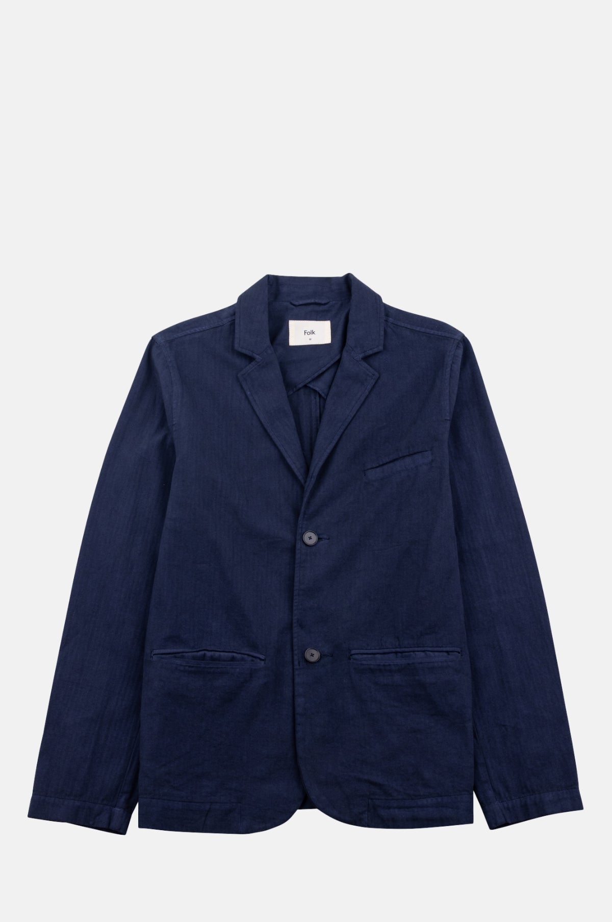 Folk offers style without drama using simple patterns with a focus on quality and textures to create approachable collections enriched by subtle details. The Assembly Blazer in Navy Herringbone is a lightweight unstructured blazer that can be dressed up or down with ease. Pair with the matching pant for a full suit.