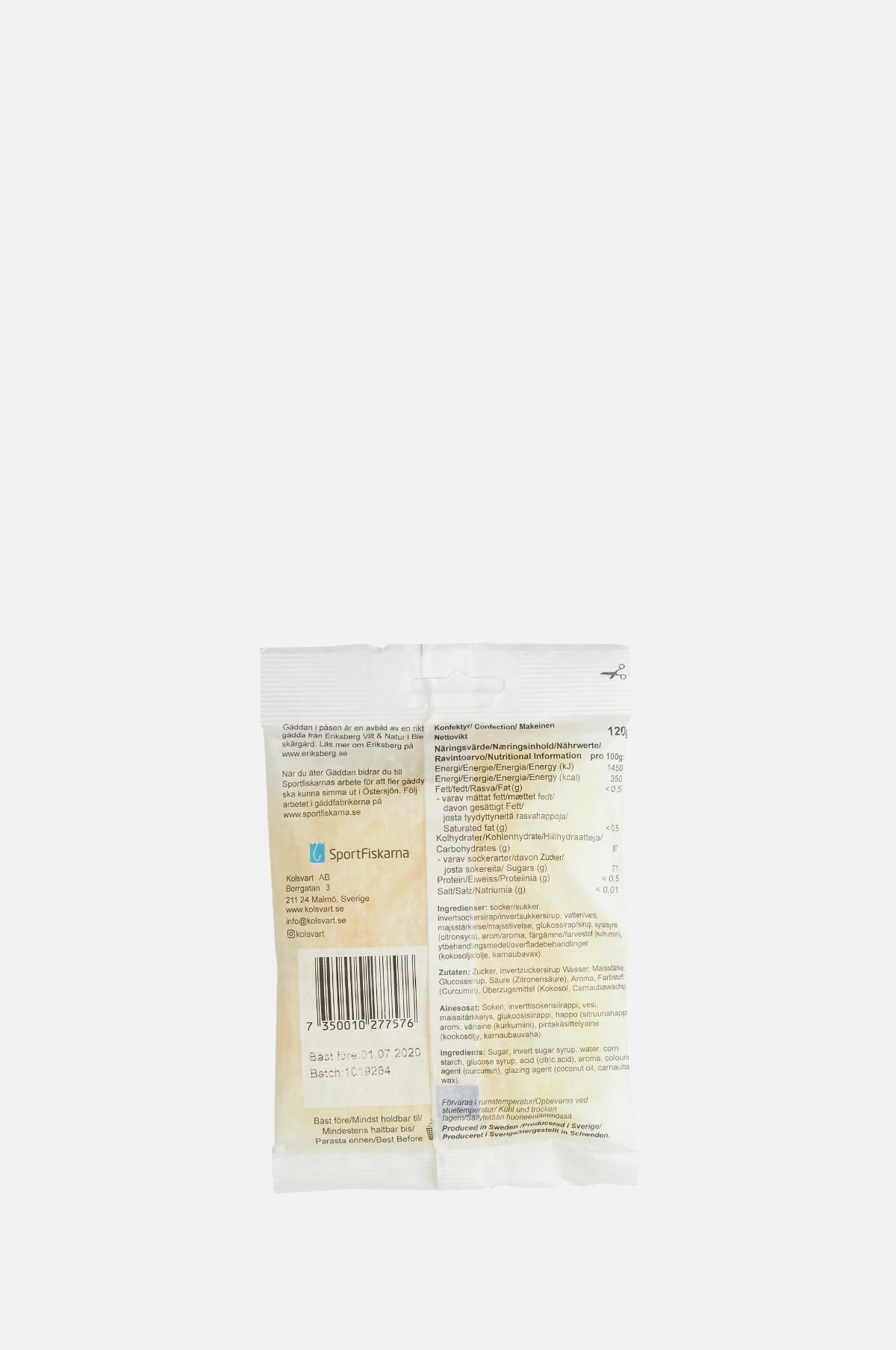 - Made in Sweden Ingredients: Sugar, Invert Sugar Syrup, Water, Starch, Glucose Syrup, Acid (Citric Acid), Natural Flavour, Colour (Curcumin), Coconut Oil, Glazing Agent (Carnauba Wax). KV06