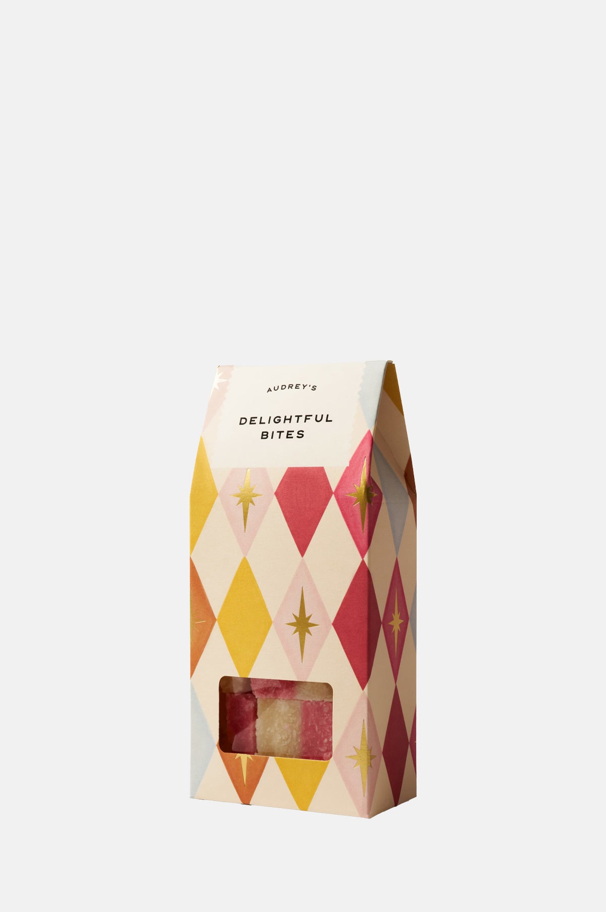 This delightful box is filled with Audrey's traditional coconut ice: creamy, crumbly, and just the right amount of sweet, this old-fashioned favourite brings back fond memories with every bite.