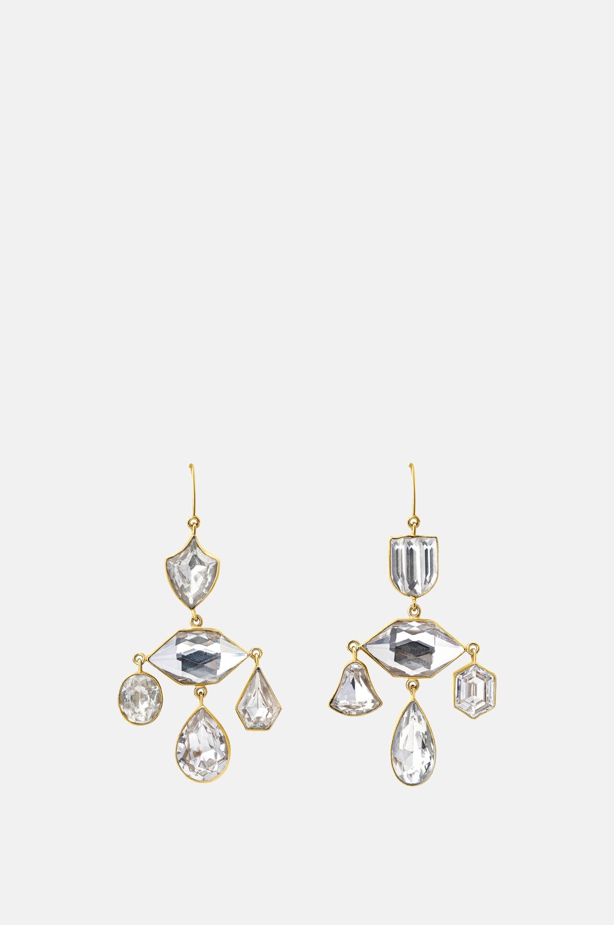 Materials: Ethically sourced 18k gold-plated silver and vintage rhinestone. Fitting: Hook Ear Length: 60mm Width: 40mm Weight: 12g each Painstakingly crafted, each and every object Grainne places in to her compositions are delicately set by hand in silver… each casing measured, carefully, for a snug fit, soldered, pierced and polished, before placing in the tiny object, and rubbing the metal over to secure. As most feature elements are natural or vintage each finished item has a unique look and may vary slightly from the image shown. E-CHA