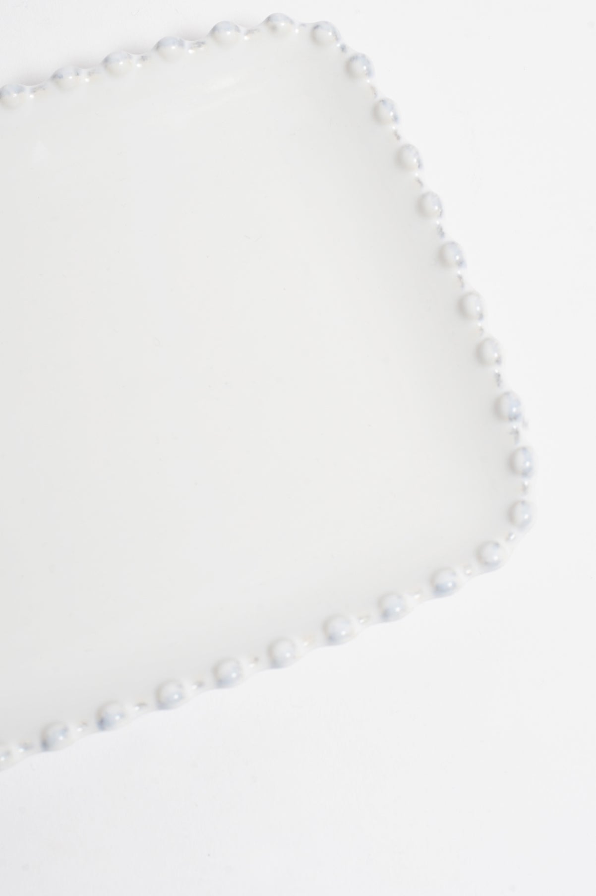 This pearl white rectangular tray is detailed with pearl edging and will
