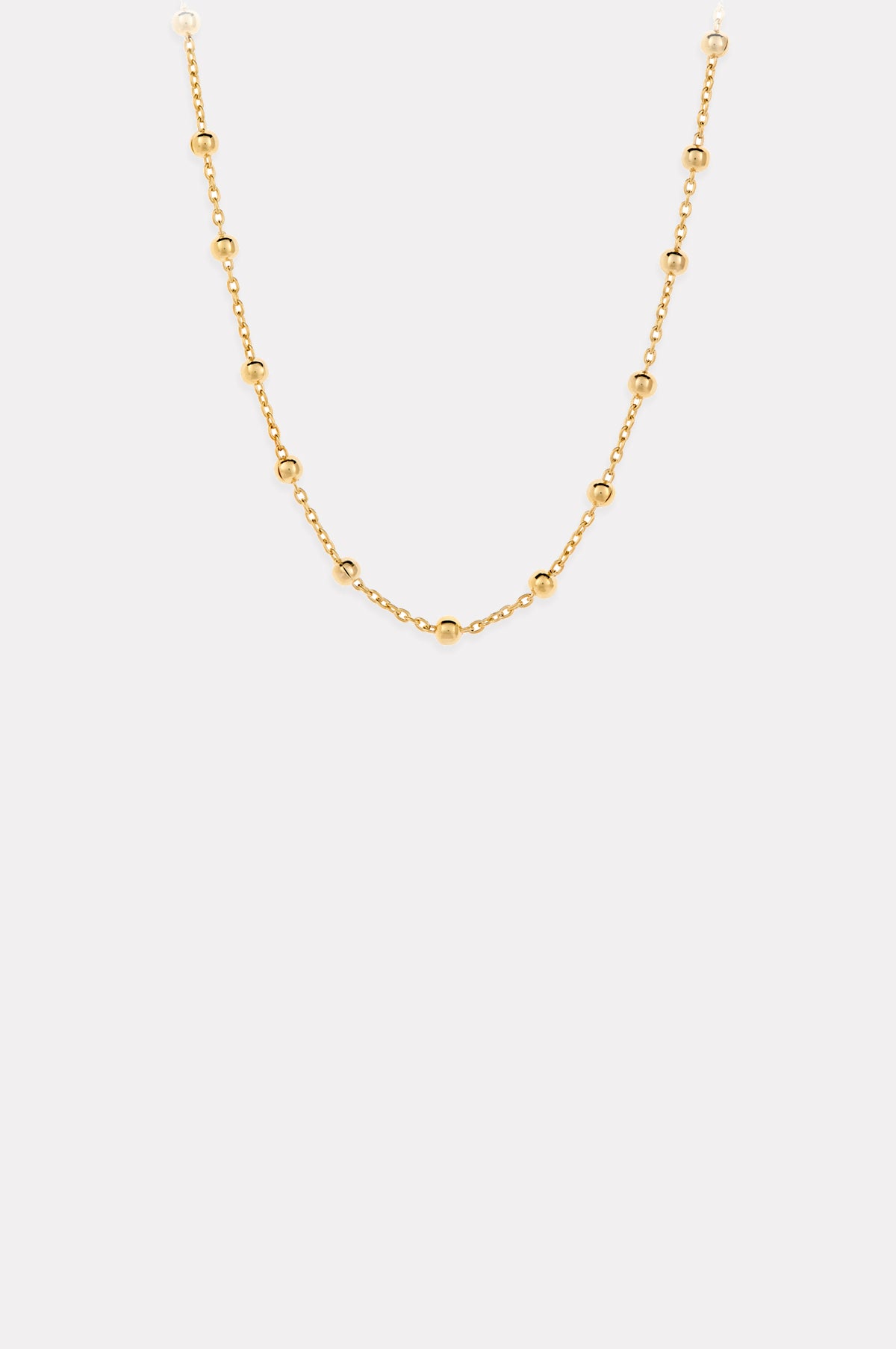 The Vega Gold Necklace tells the love story of following your dreams and trusting your inner gut feeling. The necklace comprises a delicate chain featuring mini golden balls along its total length. Simple yet beautiful enough to show off on its own or layered with your other favourite pieces.