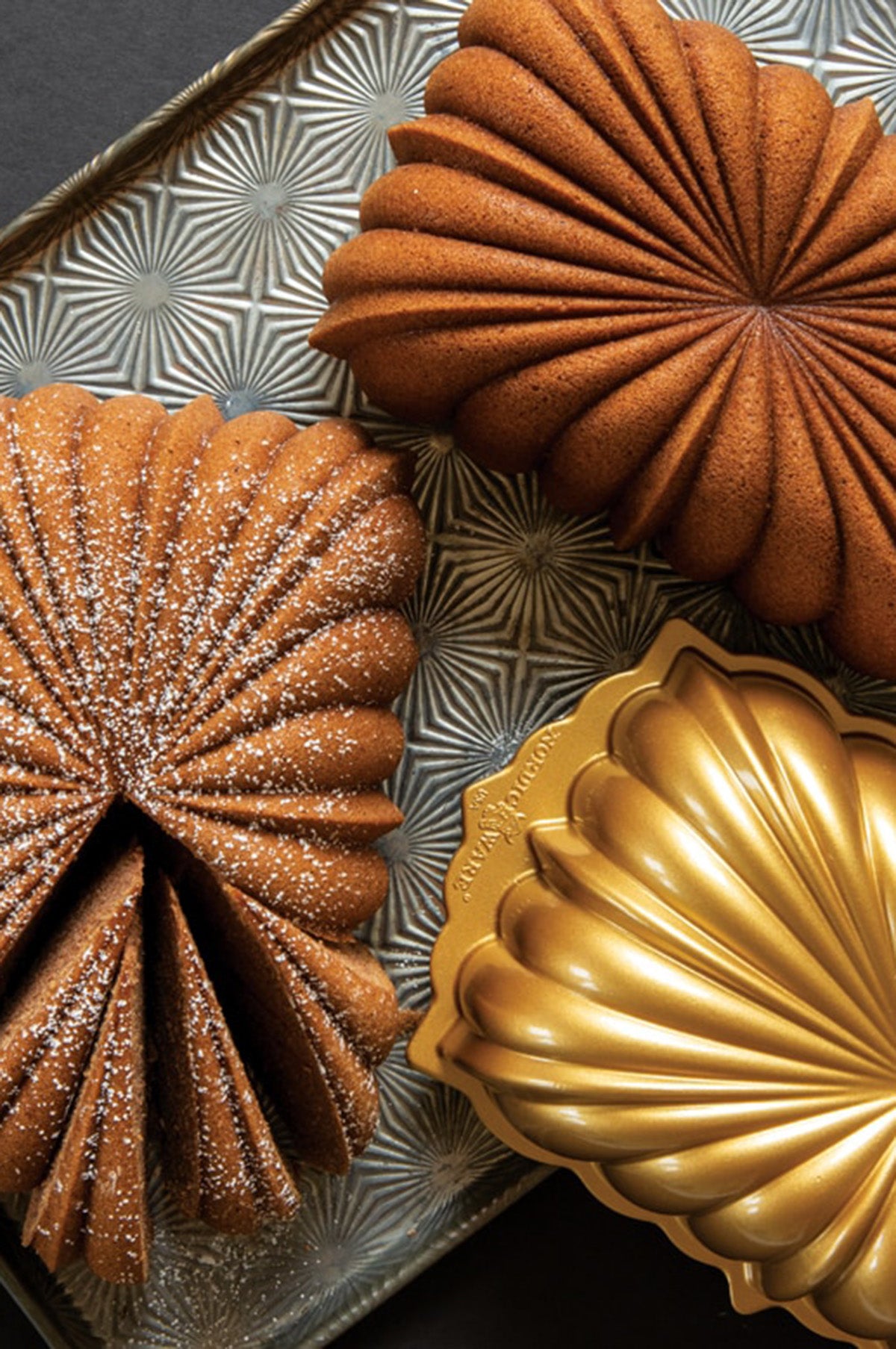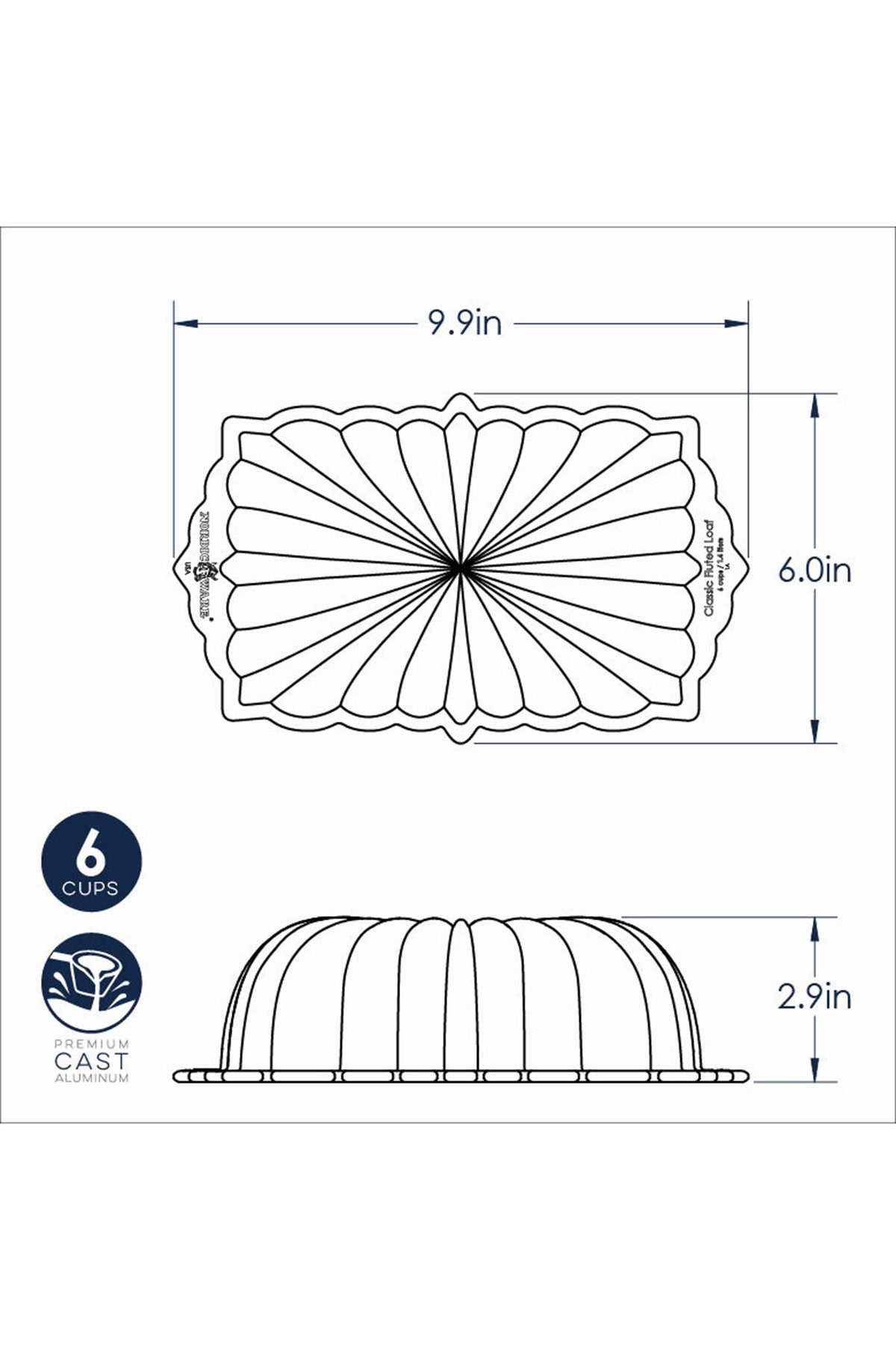 This Gold Classic Fluted Loaf Pan from Nordic Ware is made from durable cast aluminum. With a 6 cup capacity, it's the perfect choice for elegant quick breads and cakes featuring stunning starburst flutes which match the brand's original Bundt pan.