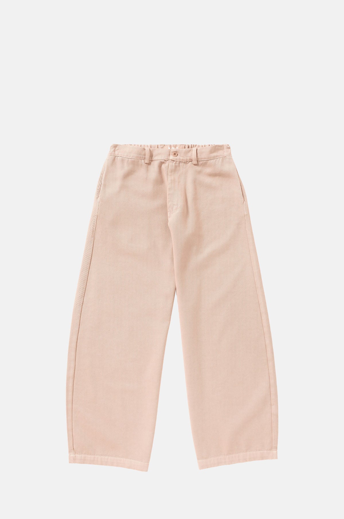 With a neater silhouette, the Bum Massaua Pant lend themselves to elegant and functional wear. Constructed from a tactile twill cotton in a soft blush colourway, they make dressing for Spring a joy. The wide leg gently barrels out to provide a soft structure and falls from an elasticated back waistband. Handy side seam pockets finish the design.
