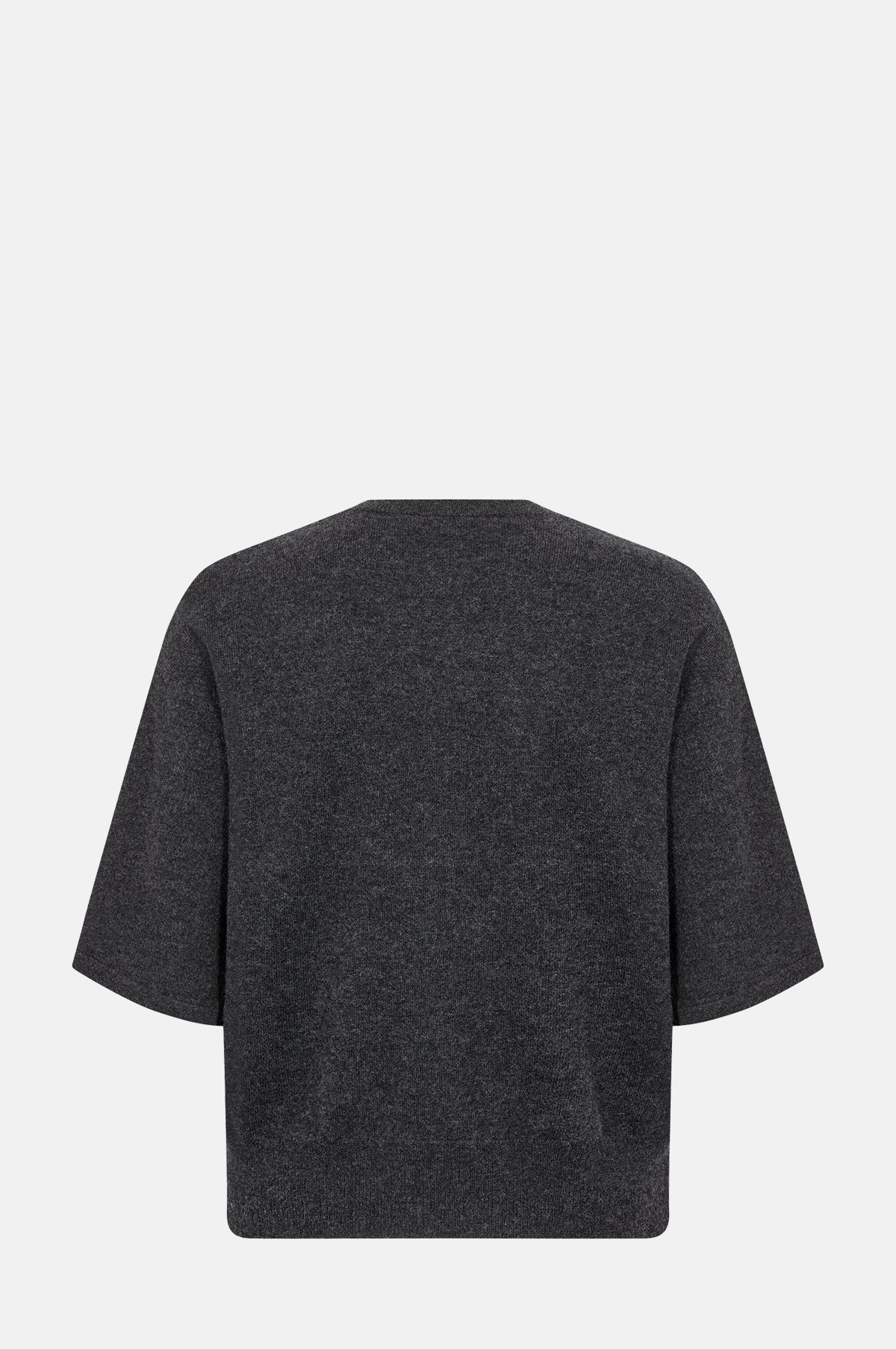 A light layer for everyday, the Ismalia Top is a knitted t-shirt crafted from soft merino wool. With a stylish crew neck, elbow-length sleeves and contemporary boxy fit, this charcoal grey t-shirt makes mastering transitional dressing a piece of cake.