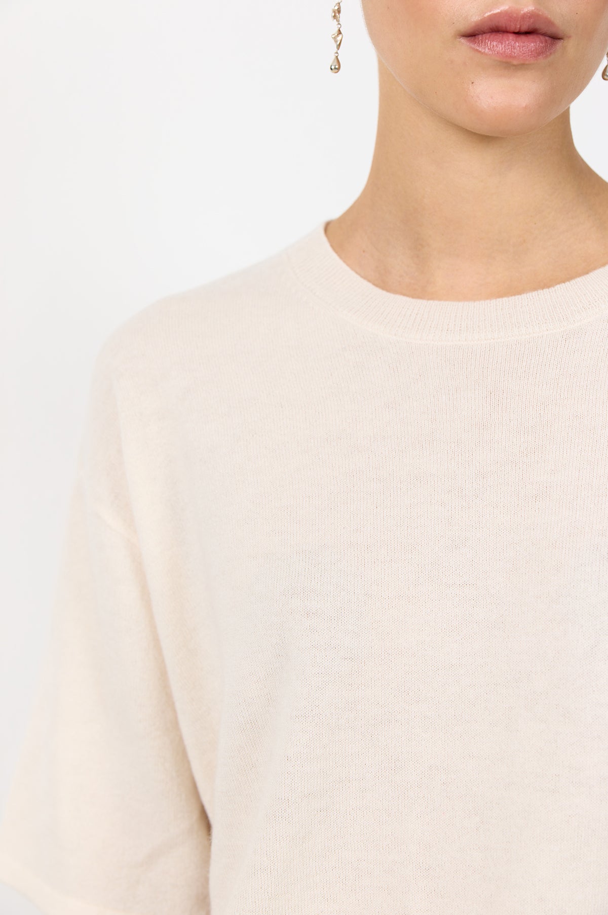 A light layer for everyday, the Ismalia Top is a knitted t-shirt crafted from soft merino wool. With a stylish crew neck, elbow-length sleeves and contemporary boxy fit, this light beige t-shirt makes mastering transitional dressing a piece of cake.