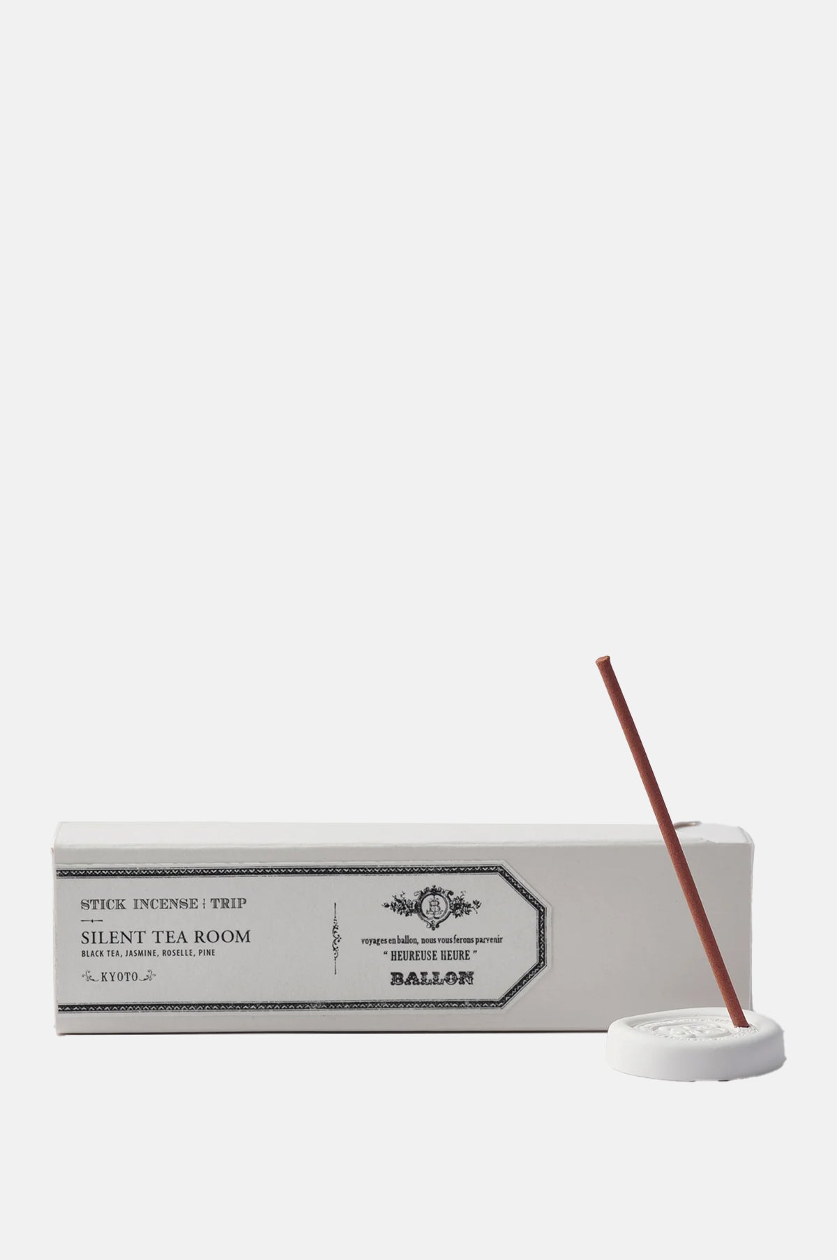 Step into the serene rhythm of a Kyoto tea garden with Silent Tea Room, an enchanting incense set by Japanese brand Ballon. Part of a collection inspired by four iconic cities, this elegant box contains 20 incense sticks and a porcelain stand, crafted with understated refinement. The fragrance unfolds with notes of black tea, jasmine, roselle, and pine — a delicate, meditative blend that evokes quiet reflection amidst lush gardens and ancient temples. A sophisticated, calming scent to infuse your daily rituals with balance, tranquility, and understated luxury.
