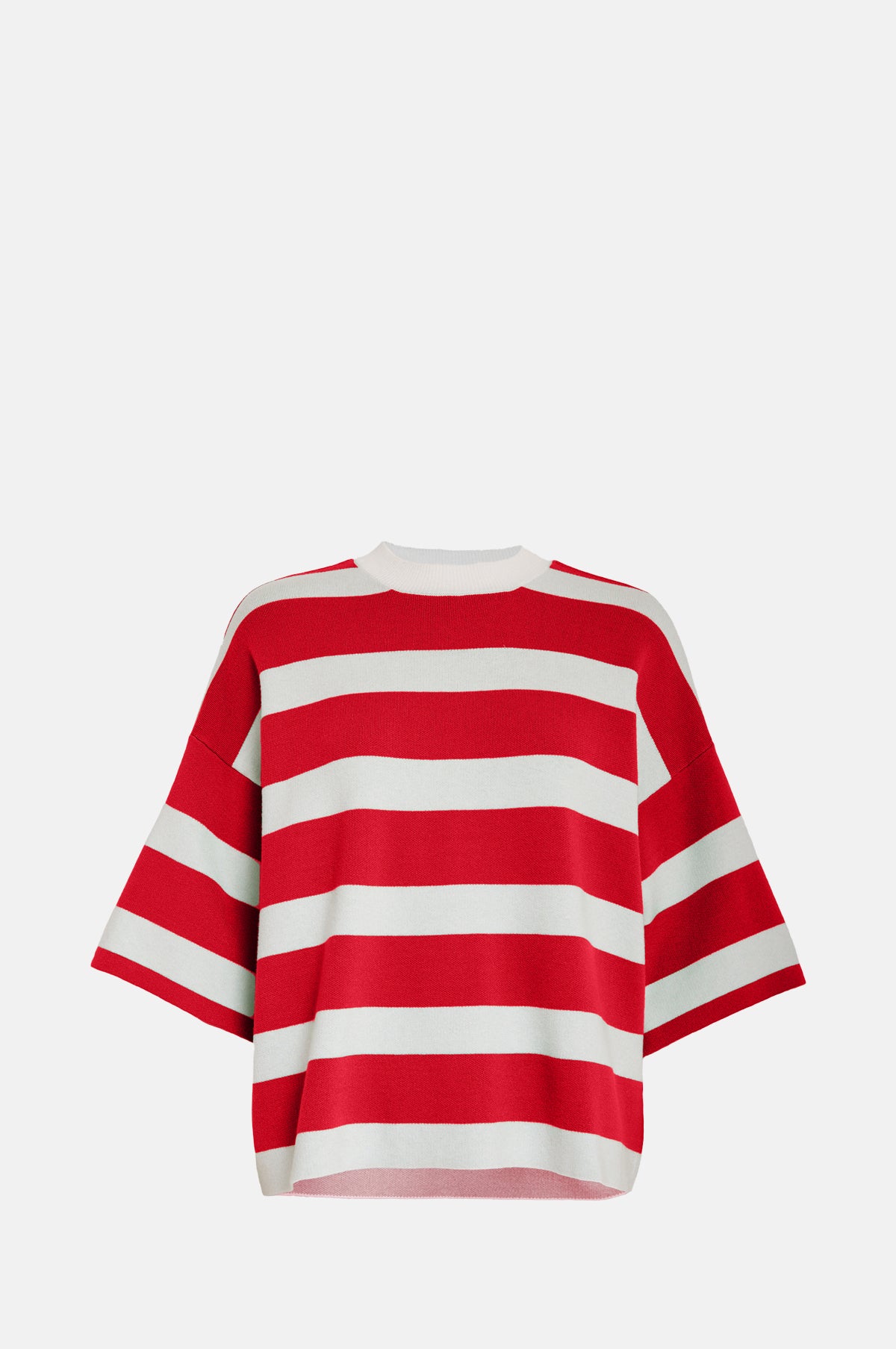 For something a touch more casual, the Lupi Knit bridges subtle elegance with Scandinavian simplicity. Cut from a knitted fabric blend with a pleasing weight, it has a relaxed shape designed with dropped shoulder seams, short and wide sleeves and a high round neck. Patterned in a classic red and white stripe, this t-shirt will be a hero for transitional dressing with a versatility that makes it easy to style.