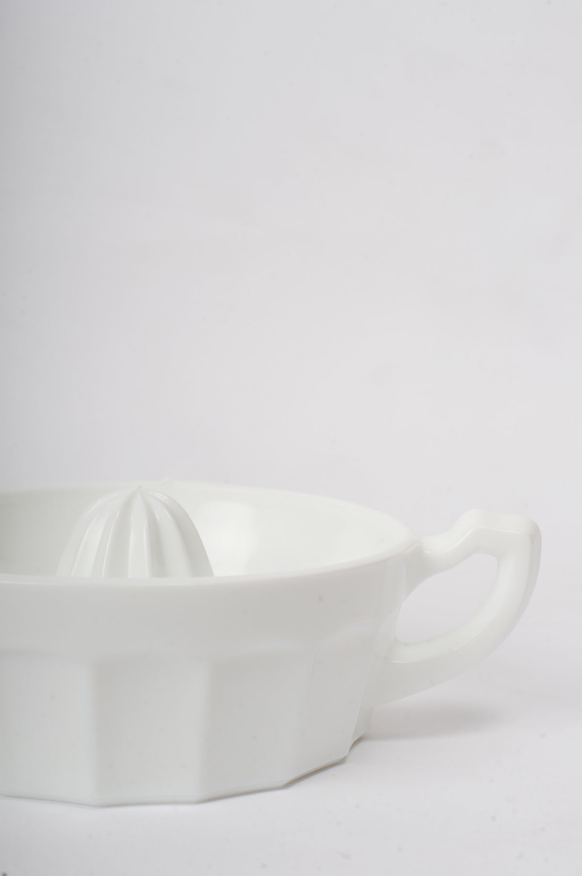 No kitchen is complete without a beautiful juice reamer! Crafted from bright sky blue milk glass, squeeze away lemons and oranges whilst easily collecting and pouring the fruits of your labour. We have this available in Georgia Blue, Jade and Milk.