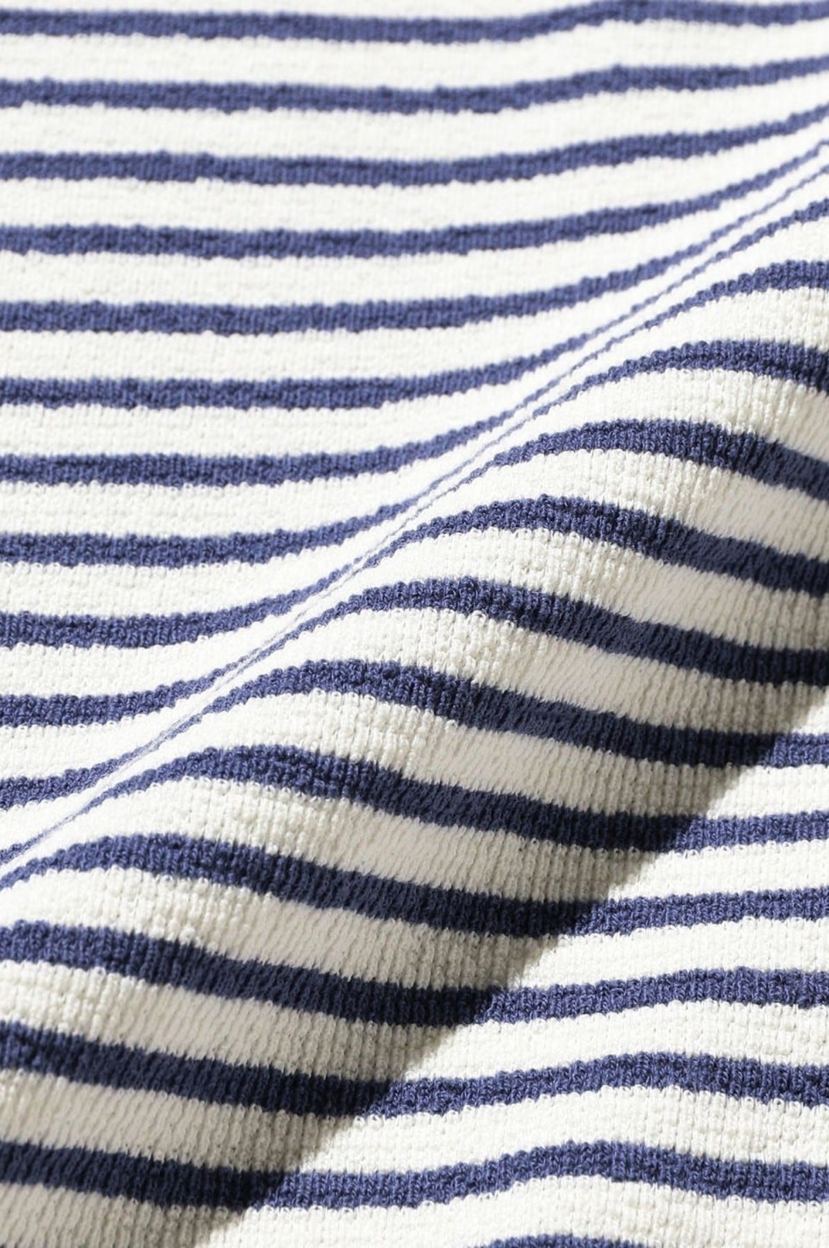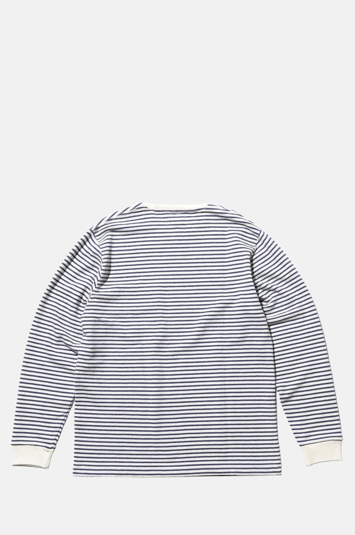 - Long-sleeved tee with narrow navy and white stripe pattern