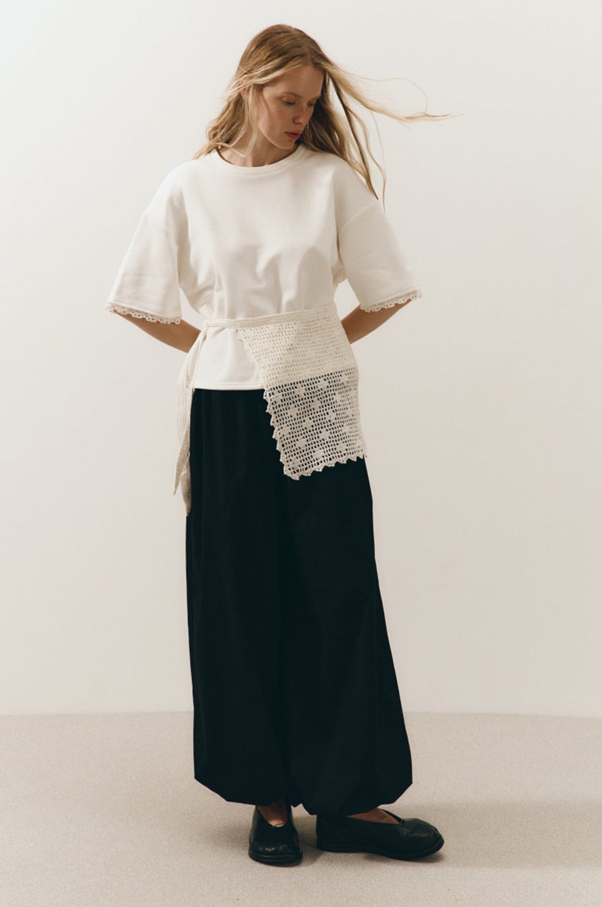 - Elasticated drawstring waist