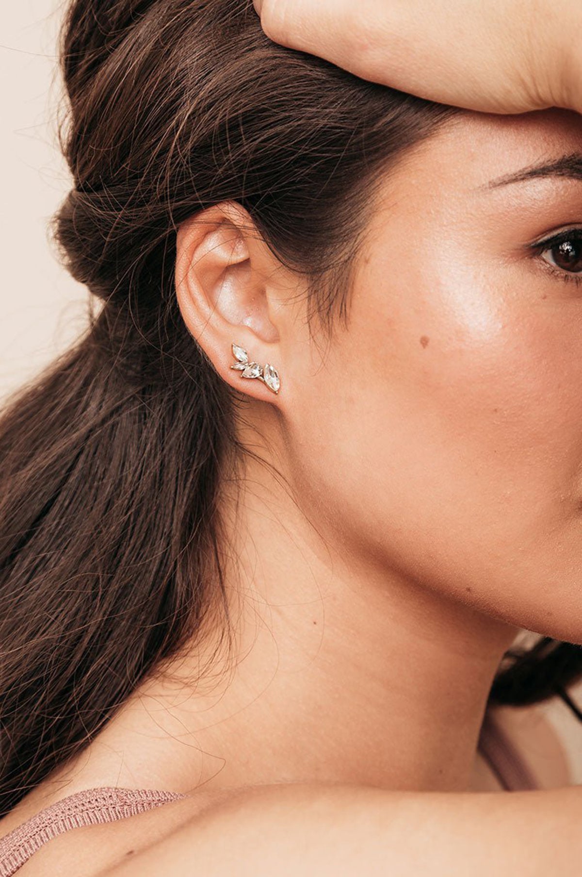 The Sydney gold studs blend timeless elegance with a modern edge. Adding sparkle to everyday with a row of offset gems cut in varying shapes and sizes. Wear them as ear climbers or style them vertically on your lobes for an effortlessly chic look.