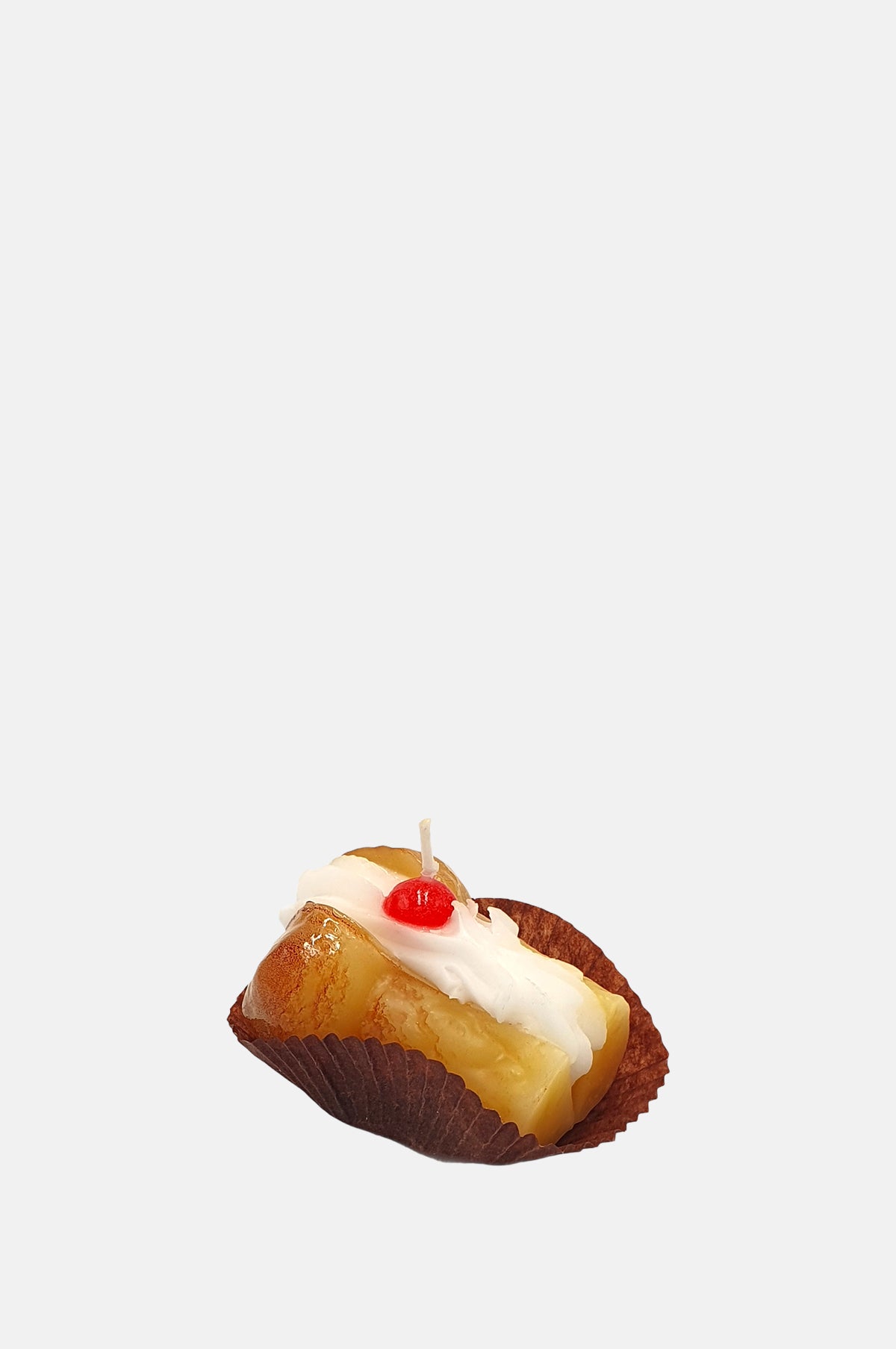 Thought to be invented in Paris in 1835, a baba au rhum is a small yeast cake that has been saturated in a rum flavoured syrup. Filled with whipped cream this delicious dessert makes a lovely sweet treat. This hyper-realistic candle of this popular European pudding will make a fun addition to any tablescape.