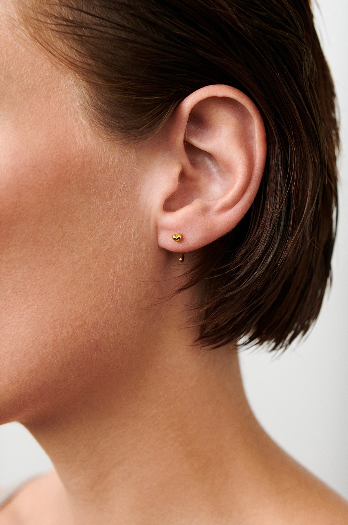 Filled with love, the Adore Gold Creoles are a pair of beautiful hoops with a small, chunky heart that pokes discreetly out of the ear. Perfect for wearing by themselves or stacking with other earrings for a elegantly layered look.