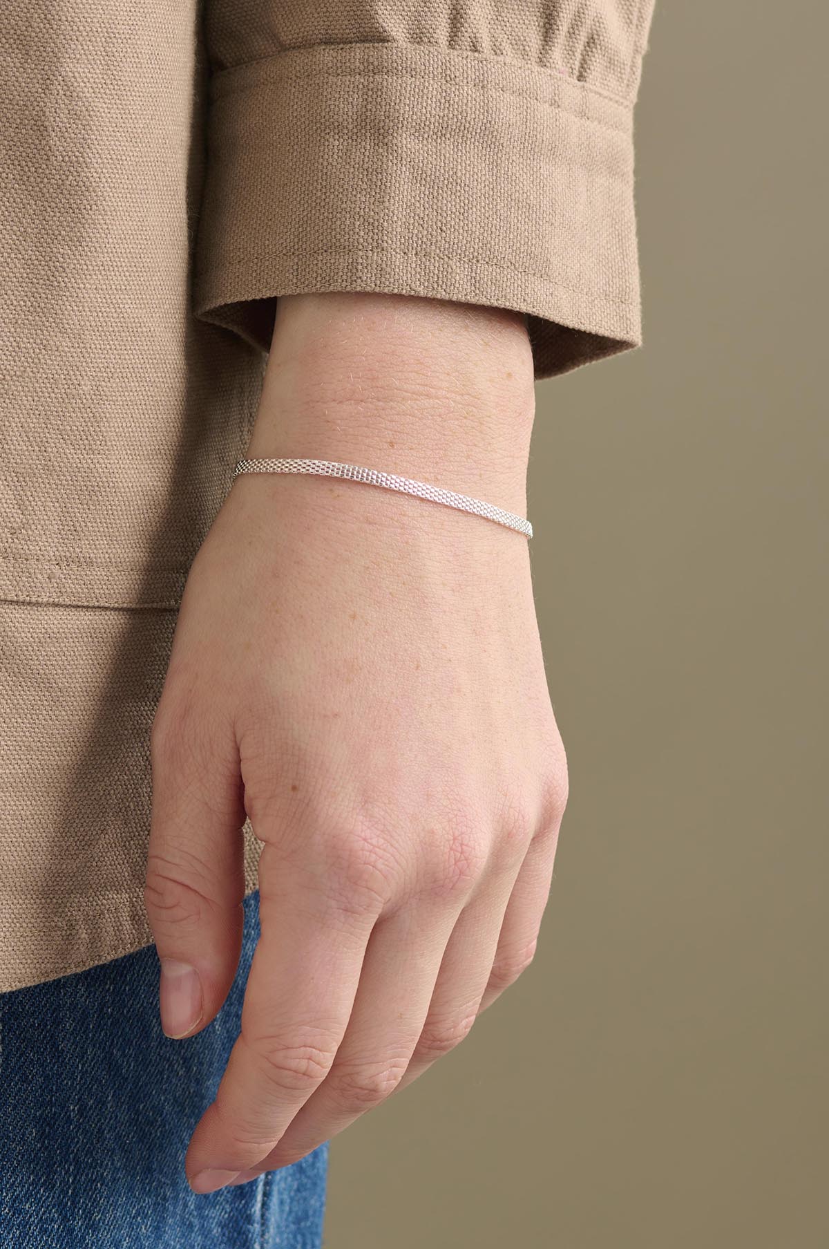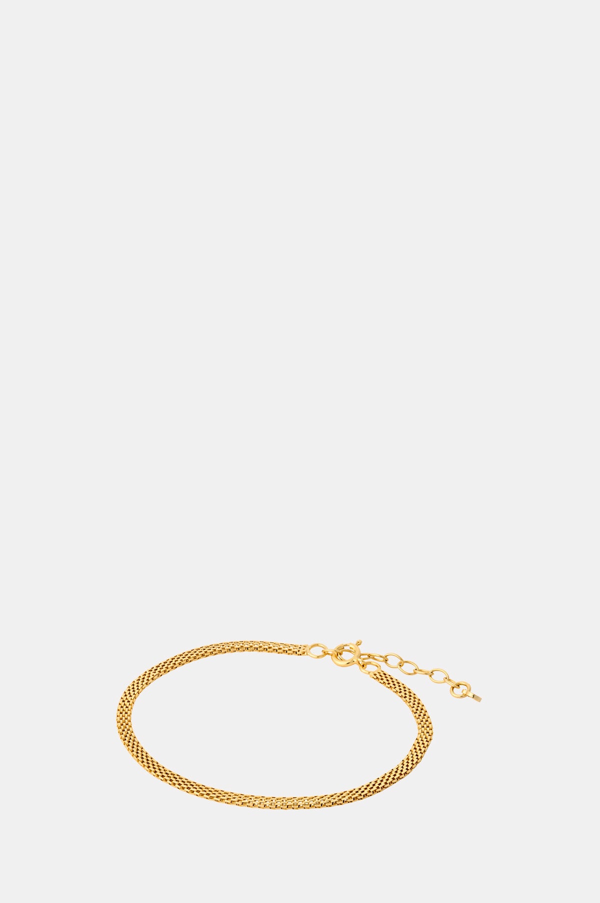 We are obsessed with this super slinky woven style gold bracelet as it is lightweight and fine yet effortlessly catches the light to make it a standout piece. Eye catching enough to wear solo and minimal enough to layer up with other pieces. This is a forever addition to your jewellery box.