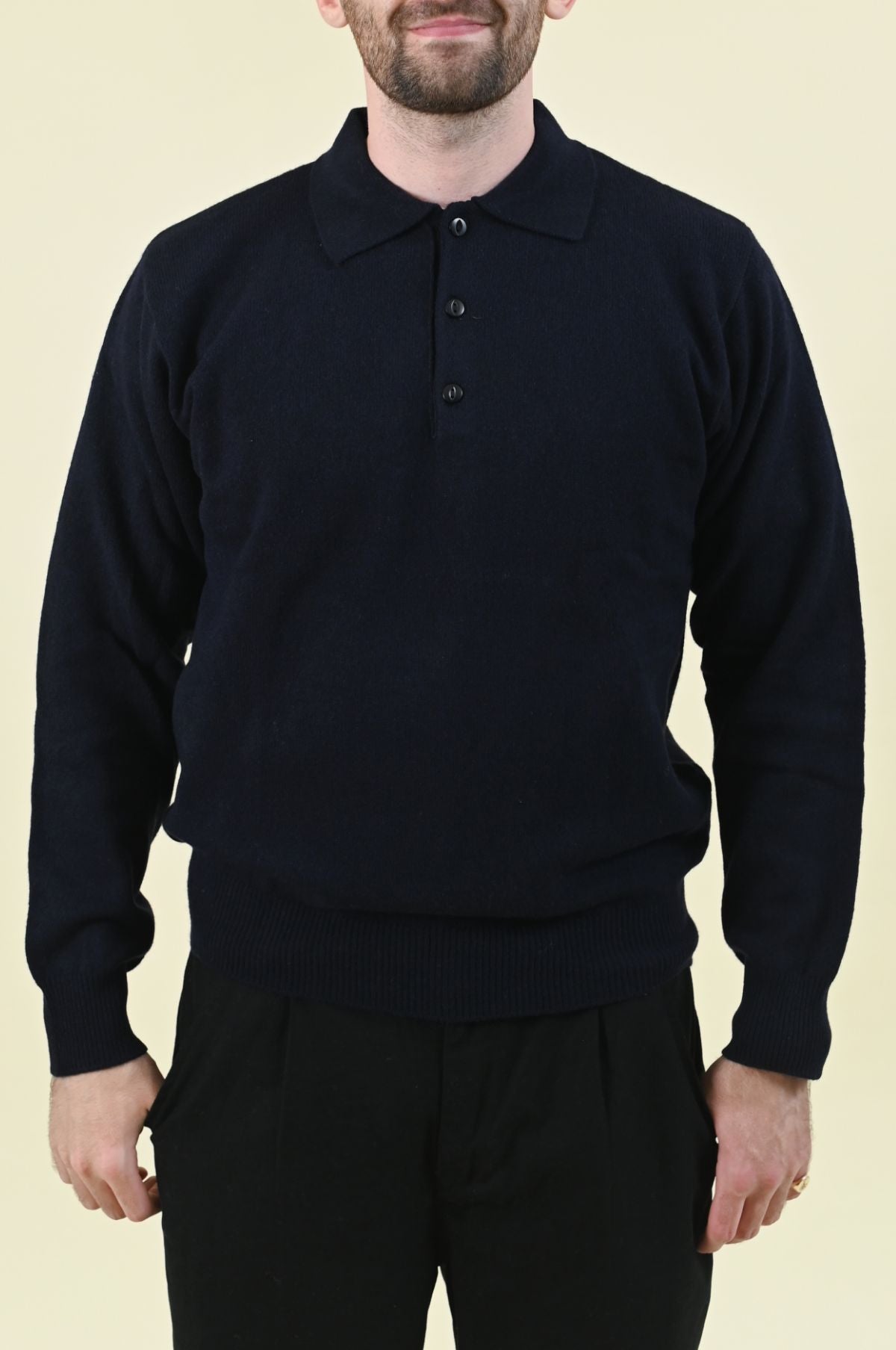 The Long Sleeve Merino Polo in Navy is Pittari’s refined take on a wardrobe staple. Knitted in extra-soft lambswool, it’s finished with a classic three-button placket and ribbed cuffs for a clean, minimal look. Ideal for smart-casual layering.