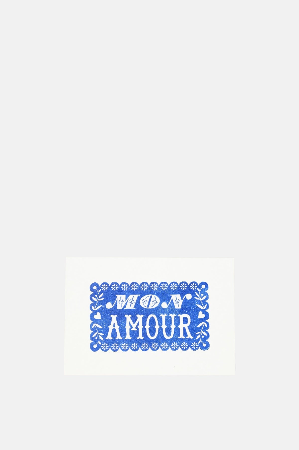 Tell that special someone just how much you love them with this linocut printed "Mon Amour" card.