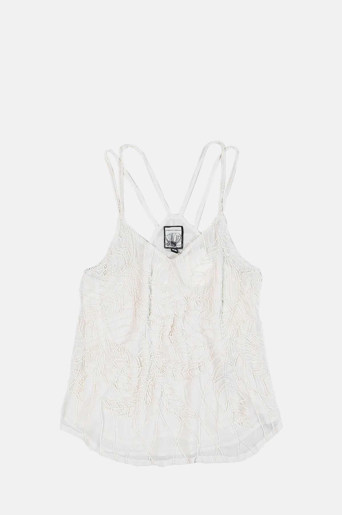 Just the thing we would like to be donning come Summer - the Yara top is exquisitely detailed with shaped beads to create a leaf pattern. Falling gracefully on the body to form a loose silhouette with a strapped neckline in a soft V shape, this cream top has a rounded hemline which adds to its romantic shape. Crafted from a lightweight viscose georgette the top is lined in the same fabric which provides soft structure.