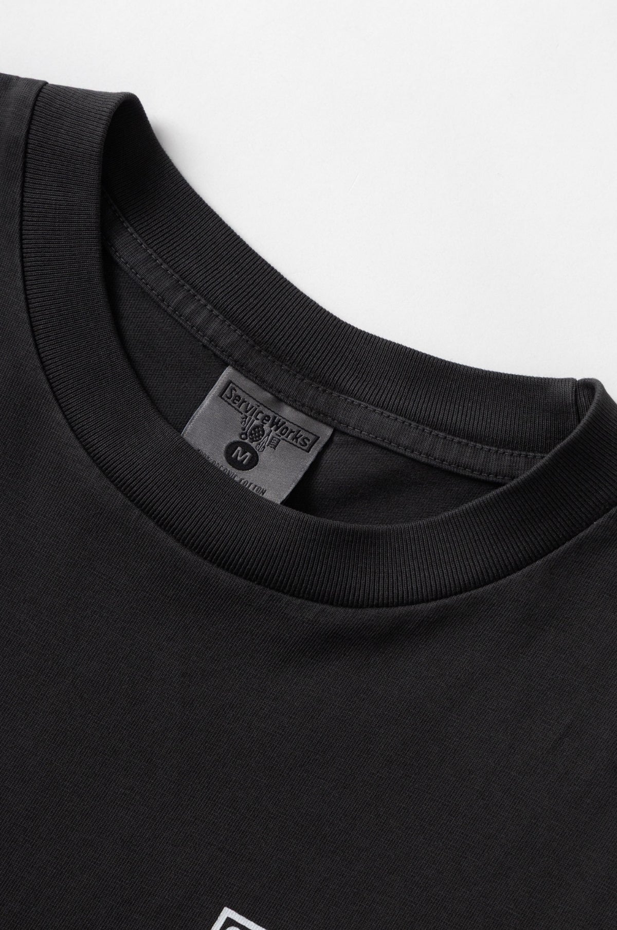 Designed for Chefs, adapted for all. Service Works offer functional clothing that originally started as uniforms for restaurants in London but now serves as the ideal everyday wear. The Pigment Dyed Trademark Tee in Black is a classic logo tee with a small chest print and features an worn in washed feel.