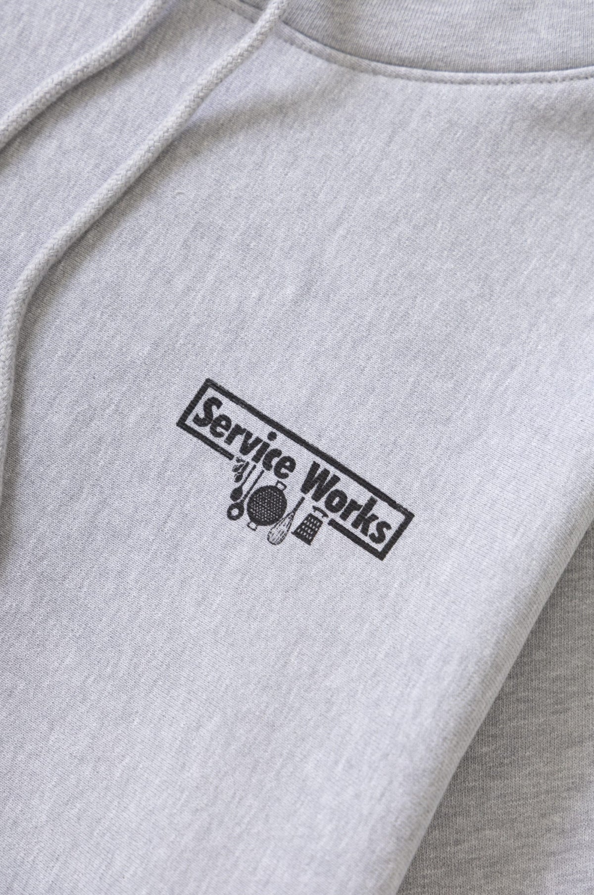 The Trademark Hoodie in Heather Grey from Service Works is an ultra heavy hooded sweat constructed of a 16oz / 560gsm brushed cotton fleece finished with a small graphic print on the left chest. Coming in a regular fit and is finished with a kangaroo pocket and drawstring hood.