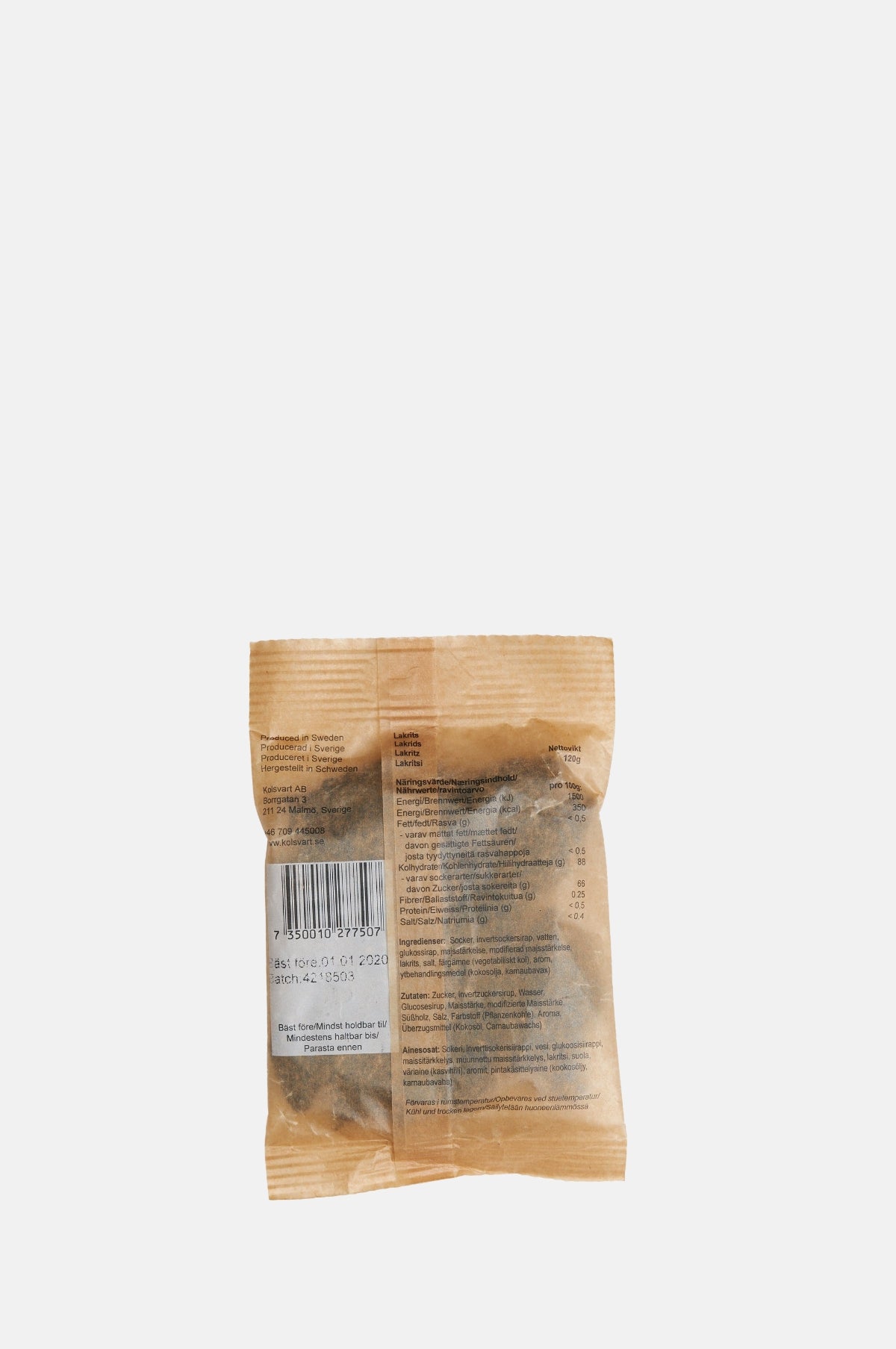 - Made in Sweden Ingredients: Sugar, Invert Sugar Syrup, Water, Glucose Syrup, Corn Starch, Modified Corn Starch, Liquorice, Salt, Natural Flavour, Coconut Oil, Glazing Agent (Carnauba Wax). KV03