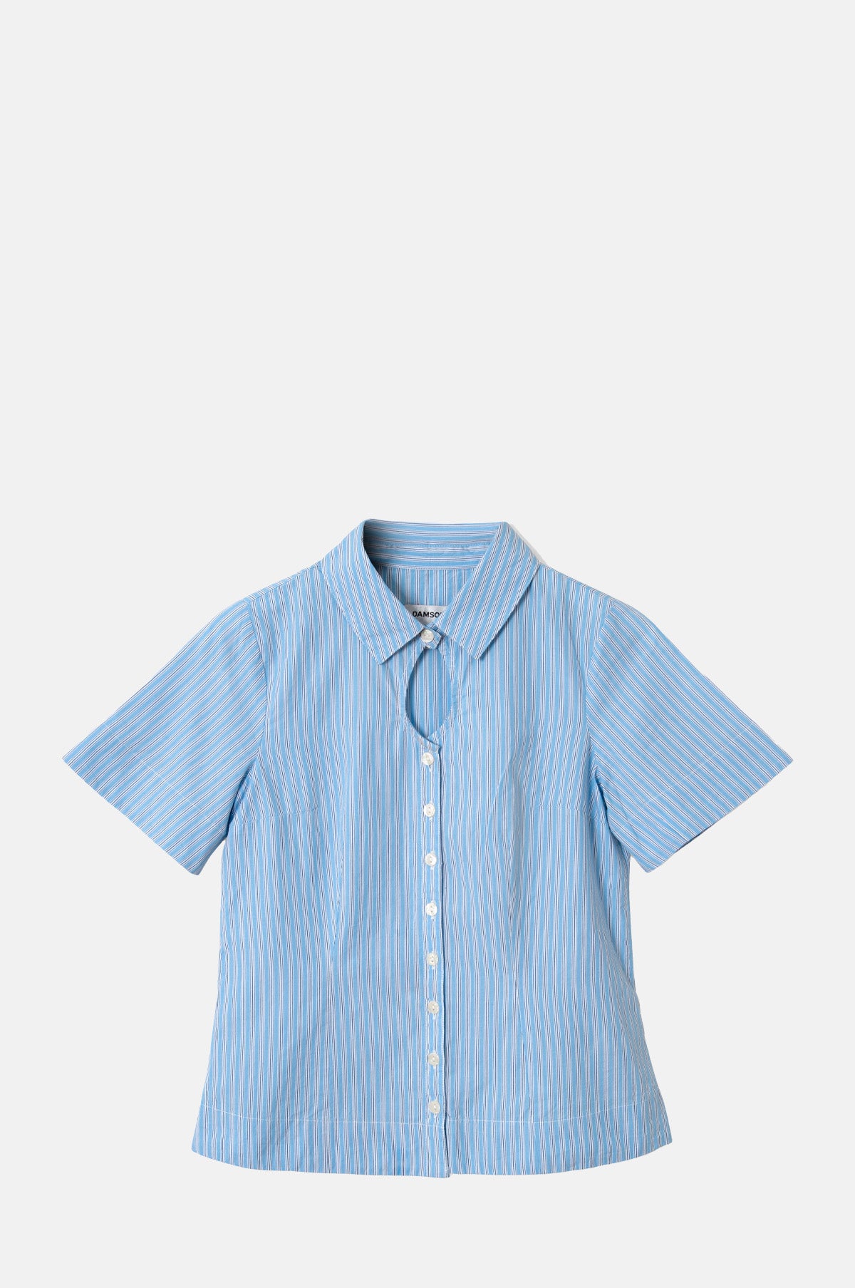 The Ebba style is an easy button-down shirt with subtle shaping through the waist for a flattering, relaxed fit. Designed with a delicate keyhole detail, short sleeves and classic stripe, it’s the perfect balance of polished and effortless.
