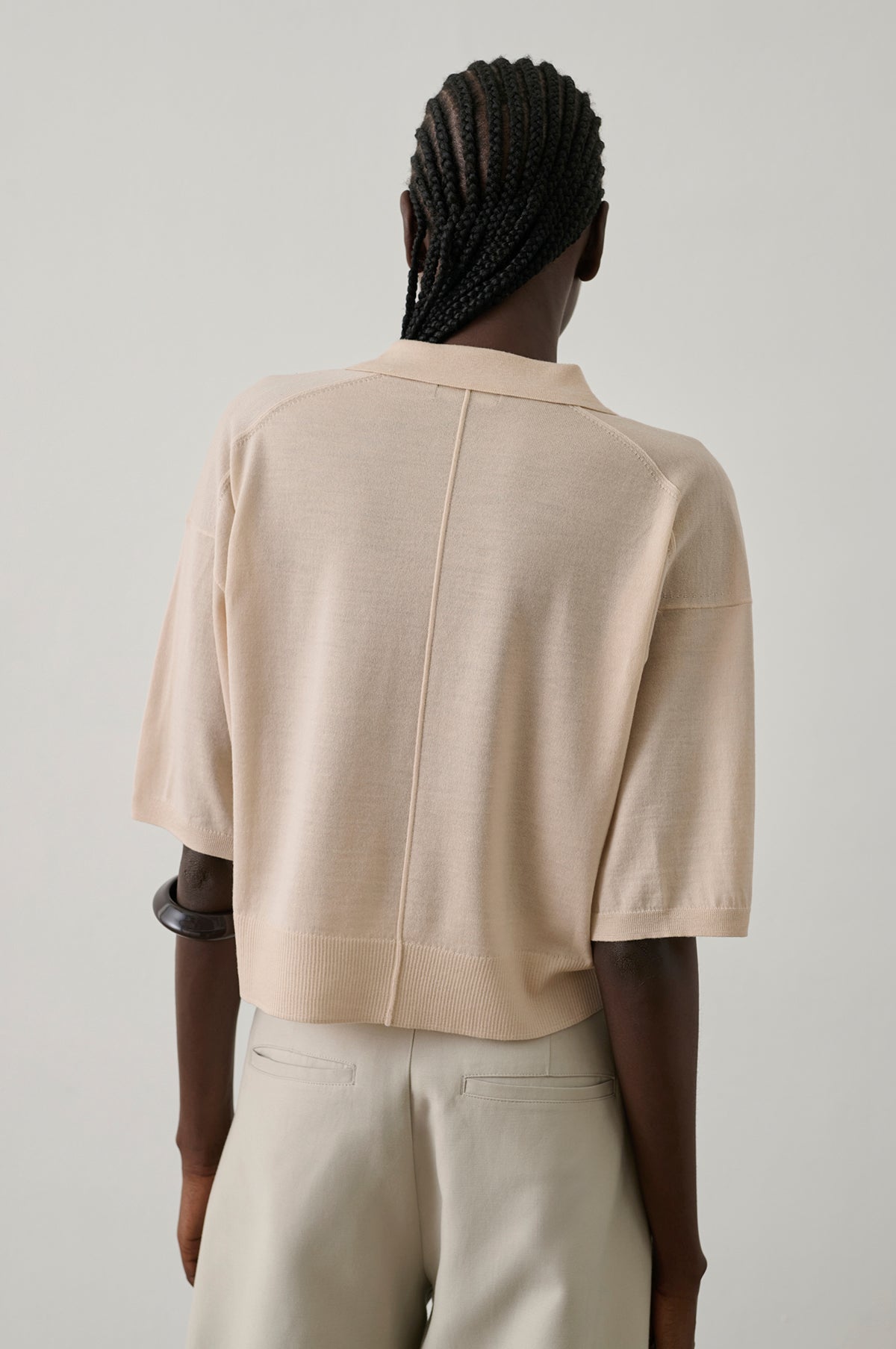 Drawing inspiration from classic polo shirts, the Elton Knit is a refined piece ideal for everyday wear. Rendered in a plaster pink, it has a fine gauge, polo collar and ribbed trims that give it a classic yet modern touch. With an ability to look equally as stylish dressed up as it can down, this knit makes a versatile addition to your wardrobe.