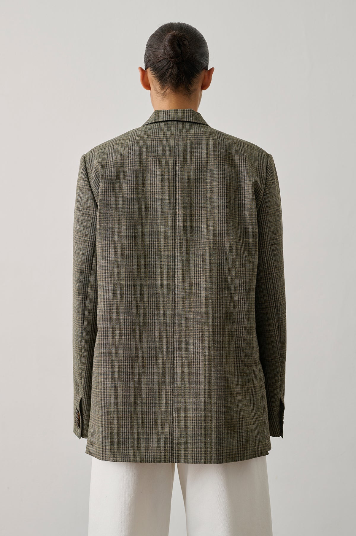 Sharp yet slouchy, the Hermosa Jacket is designed with effortless elegance in mind. Cut with a voluminous silhouette which provides a clean, considered look that Soeur does so very well. A nod to timeless convention is made with a tailored collar, two flap pockets, a welt pocket and padded shoulders. Constructed from a checked woollen fabric blend, it is an eminently wearable piece that will pair with all manner of garb.