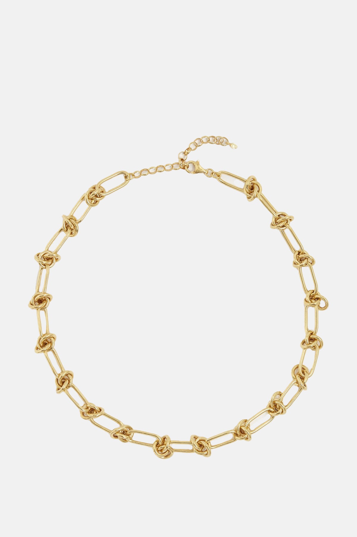 A chunky gold chain is a jewellery staple and elevates any outfit. This statement chain features a knotted design, making it a unique stand-out piece. Designed to be worn at the chest, perfect for layering with other necklaces as well as a standalone piece.