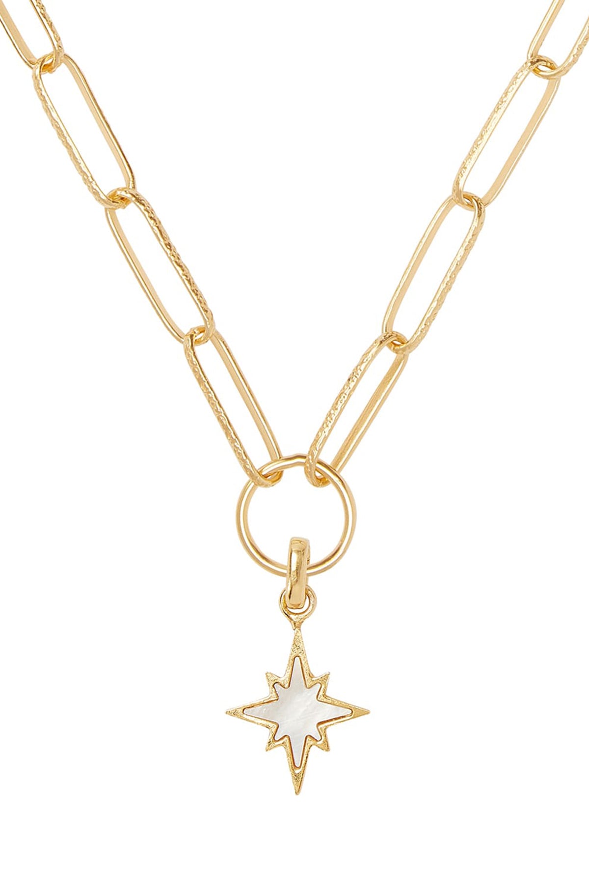 Ever so pretty, this delicate star-shaped charm is made from mother of pearl for an iridescent glow with a 18k gold plated silver surround.